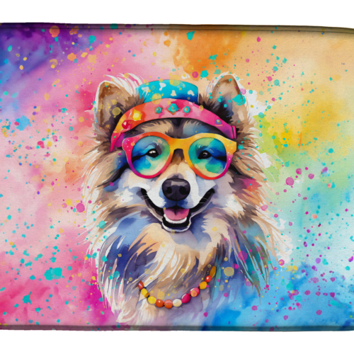 Dish Drying Mat featuring breed specific Keeshond artwork. Say goodbye to messy countertops and soggy dish towels with our innovative dish drying mat. Our high-quality dish drying pad is designed to keep your countertops dry while offering a stylish and efficient solution. Whether you’re air drying dishes, glasses, stemware, silverware, pots, pans, bottles, or even fruits and vegetables, our dish mat is the perfect choice. The 14 inches x 22 inches size fits most counters and dish drying racks, and the non-slip design ensures stability. Made with water-absorbent polyester and a polyurethane foam insert, our dish drying mat is not only functional but also durable. It’s machine washable and printed in the USA for long-lasting use. The beautiful artwork adds flair to your kitchen decor, making it a perfect housewarming gift or present for any occasion. Upgrade your kitchen experience with our absorbent and versatile dish drying mat.