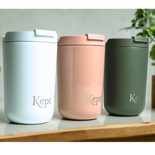 Finished with a high quality powder coating that maintains and protects the colour of your travel mug.