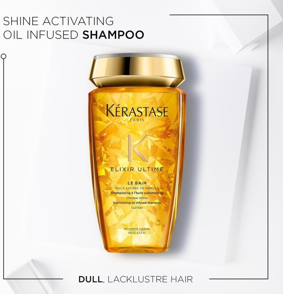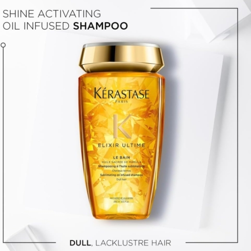 Hydrate, nourish, and enhance the shine of your hair with KERASTASE Elixir Ultime Le Bain Shampoo. Infused with a luxurious blend of precious oils, this hydrating shampoo instantly softens and smooths dry hair, leaving it visibly shiny and healthy. Perfect for normal hair, it increases elasticity while providing deep nourishment and lasting hydration.