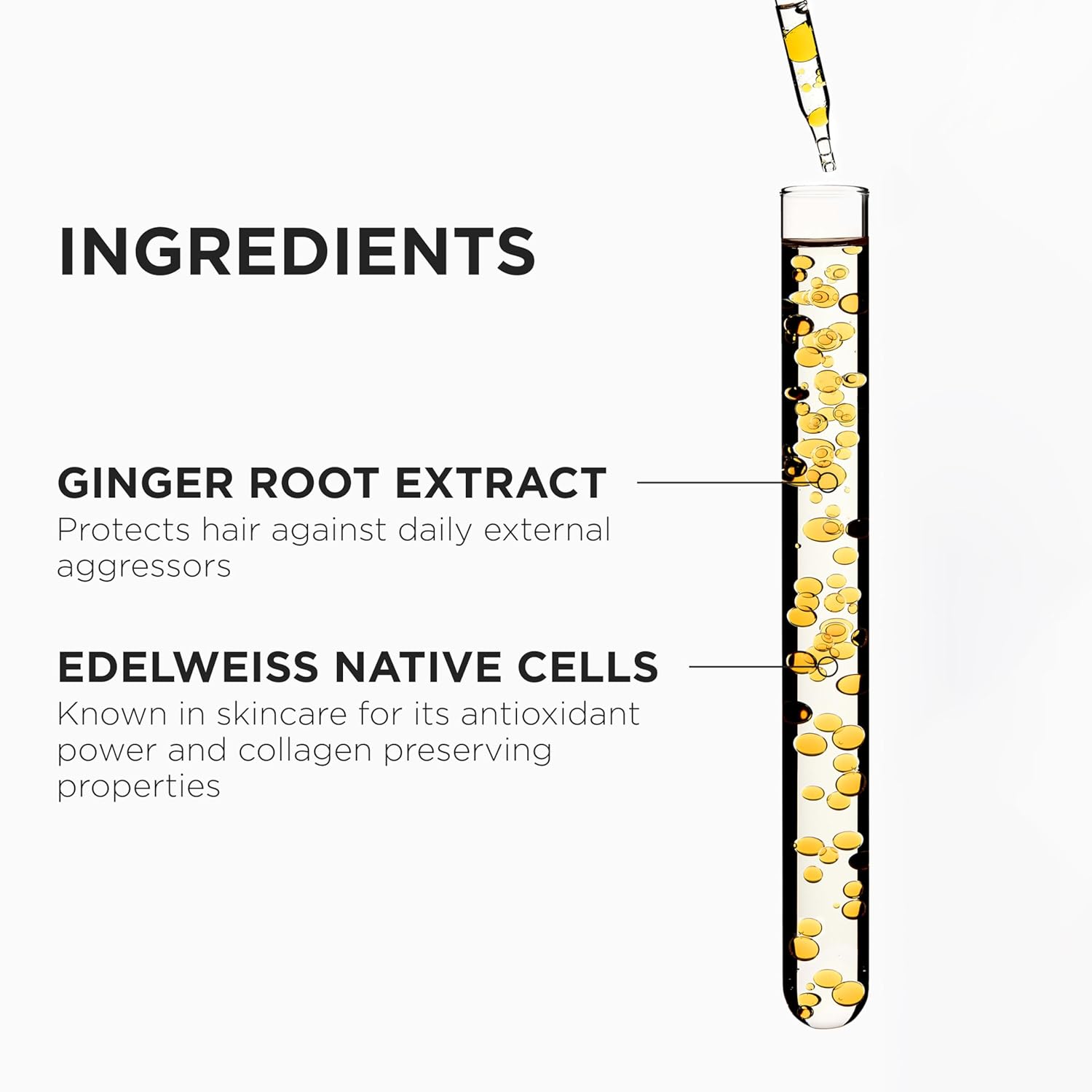 Kerastase Genesis Défense Thermique is a lightweight, heat-protective leave-in treatment that helps strengthen fragile hair and prevent breakage. Enriched with ginger root and edelweiss native cells, it provides up to 24 hours of frizz and humidity protection while nourishing strands for a smooth, healthy finish. The floral-scented formula detangles easily, shields against heat damage from blow-drying and styling, and reduces hair fall due to breakage. Suitable for all hair types—straight, wavy, curly, and coily—it delivers professional results with every use. Apply a small amount to damp hair before styling or to dry hair for taming frizz and flyaways. Sulfate-free and designed for daily use, this fortifying blow-dry fluid leaves hair feeling soft, manageable, and beautifully protected.