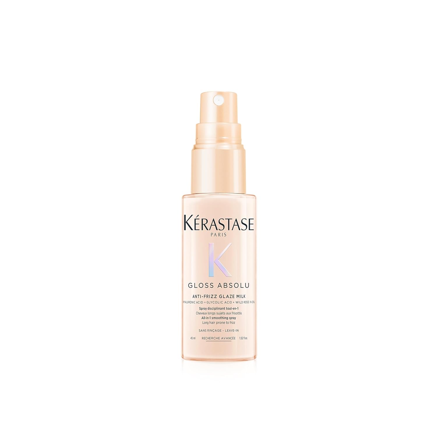 Kerastase Gloss Absolu Anti-Frizz Glaze Milk is an all-in-one smoothing spray designed for frizz-prone hair. This lightweight formula instantly detangles, hydrates, and smooths flyaways while protecting strands from heat up to 450°F. With protection lasting up to 4 days, it locks out humidity and ensures sleek, polished results. The floral-scented spray makes blow-drying easier, leaving hair soft, shiny, and manageable without weighing it down. Suitable for all hair types, it’s the perfect solution for those seeking salon-quality smoothness, heat defense, and frizz control in one product. Apply to damp hair before blow-drying for best results.