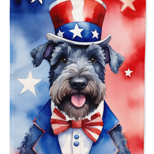 House Flag featuring breed specific Kerry Blue Terrier artwork. Presenting our Heavy Duty Polyester House Size Decorative Sleeve Pole Flag, a vibrant addition to enhance the aesthetic appeal of your home. This large decorative flag, measuring approximately 28 x 40 inches, offers ample coverage and visibility. Each flag is meticulously sewn and made individually, ensuring a unique piece that may slightly vary in size. It’s a sleeve pole flag, designed to fit a standard decorative flag pole effortlessly. Please note that the flag pole and bracket are not included and should be purchased separately. What sets our flag apart is its dual-sided print. The design is mirrored on both sides of the fabric, allowing for uniform visibility regardless of the angle. Printed in full color, our flag showcases vibrant hues that truly stand out. To ensure lasting vibrancy and durability, the dyes are heat-set into the fabric. This ensures your flag remains bright and captivating through various weather conditions. Elevate the look of your home with our Heavy Duty Polyester House Size Decorative Sleeve Pole Flag!