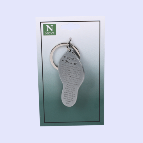This silver metal keychain is designed to inspire faith and reflection. Shaped like a foot, it features footprints on one side, symbolizing the journey of life. On the other side, the passage Footprints in the Sand is engraved, a powerful reminder of Godís presence and guidance during difficult times. Measuring 1L x 2.375H, itís the ideal size for keys, bags, or other personal items. The keychain includes a sturdy circular keyring for easy attachment and durability. Its thoughtful design makes it a meaningful accessory for those who cherish faith-based reminders in their everyday lives. Perfect for gifting or for personal use, this keychain is a beautiful representation of Godís love and support. Sold in a pack of four, it’s perfect for sharing with friends, family, or members of your church group. The silver finish offers a sleek, modern look while maintaining the spiritual significance of the design. Whether youíre keeping it as a personal reminder or giving it to someone special, this keychain is a beautiful symbol of faith.
