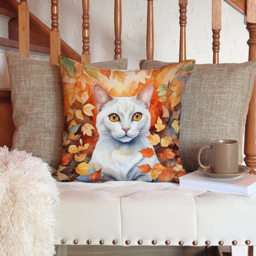 Throw Pillow featuring breed specific Khao Manee artwork. Celebrate Halloween with this Halloween Pillow. Add a touch of vibrancy and comfort to your outdoor seating with Caroline’s Treasures Fabric Decorative Pillow. Measuring approximately 14 inches by 14 inches, this outdoor pillow is crafted to elevate the appeal of your patio furniture, infusing it with vivid color and artistic flair. The pillow includes a 100% Polyester Fabric sham filled with a quality pillow form to provide superior comfort. Innovatively made from our brand new material, specifically woven for its water resistance, this pillow is designed for durability. The soft canvas fabric offers versatility in use, fit for your indoor couch or your outdoor patio, porch, or veranda. The fabric is dyed with colorfast dyes built for resilience against weather conditions, ensuring the pillow retains its beauty over time. Constructed by sewing three fabric pieces to create a sham, the polyester insert is then nestled inside to form the pillow, resulting in an overstuffed pillow that maintains its shape. Both the sham and the pillow insert are proudly made in the United States. As the pillows are handcrafted, there may be minor variations in size, further enhancing their unique charm. Experience comfort in style with Caroline’s Treasures Fabric Decorative Pillow.