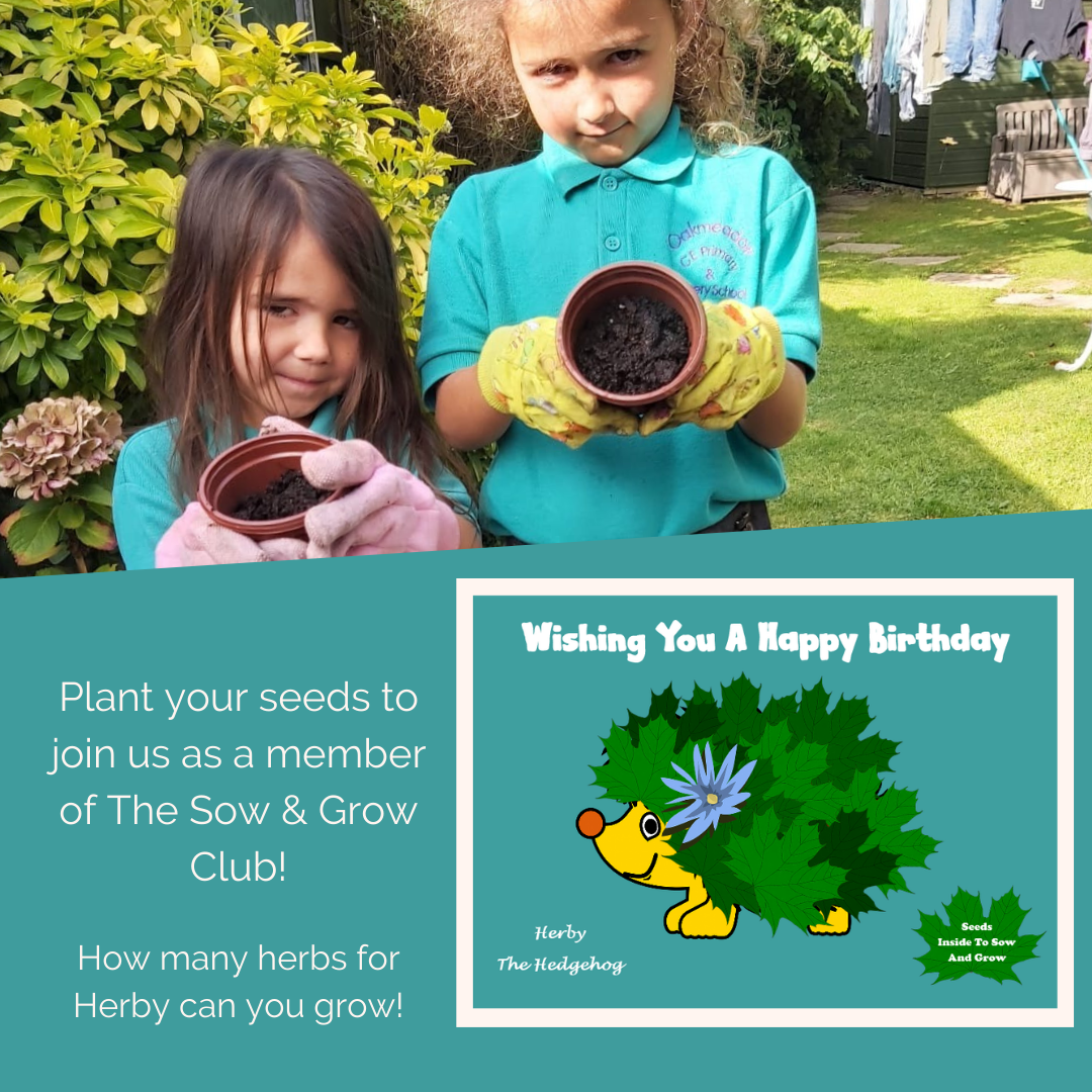Kids Birthday card with a gift of herb seeds – Herby the Hedgehog
