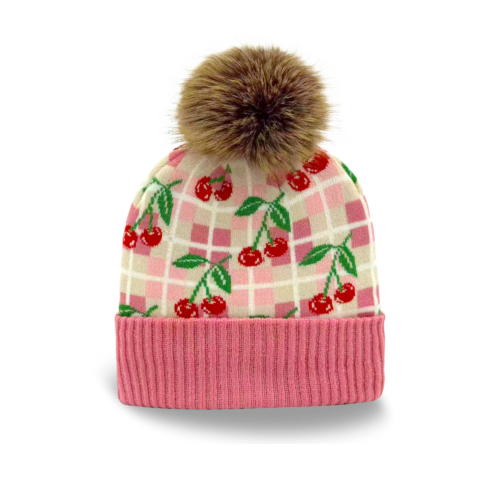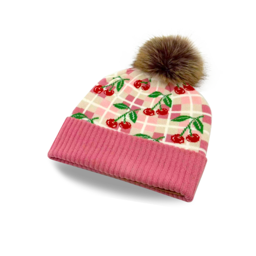 This Kids Cherry Pattern Pom Knit Beanie is designed to bring warmth and playful sweetness to everyday cold-weather wear. Inspired by classic fruit illustrations and soft textile patterns, the repeating cherry motifs are layered over a gentle checkered background, creating a look that feels cheerful, cozy, and easy to love. A soft pink and cream color palette sets a warm, friendly tone, while the bright red cherries and green leaves add lively contrast. The balanced pattern layout keeps the design fun without feeling busy, making it easy to pair with winter jackets, sweaters, and everyday outfits. Crafted from soft knit fabric, this beanie offers comfortable warmth with a lightweight feel. The fold-over ribbed cuff provides a secure fit for growing kids, while the fluffy pom pom adds a classic winter detail with a playful finish. Designed for daily wear, outdoor play, and thoughtful seasonal gifting, it’s a charming accessory kids will enjoy wearing again and again. ✿Key Features Soft knit construction for cozy warmth and everyday comfort Playful cherry pattern with a clean, balanced layout Fold-over cuff and pom pom detail for a classic winter look ✿Kids Size: Fits most kids, suitable for head circumference 52–54 cm. ✿Key Retail Sales Channels This beanie is a versatile wholesale item that works well for a variety of retailers, including: Gift shops in tourist destinations and cultural landmarks Fashion boutiques that focus on trendy and seasonal accessories Lifestyle concept stores that carry unique, design-forward pieces College campus shops and bookstores with a youthful, playful audience Holiday markets and seasonal pop-up shops looking for eye-catching winter essentials