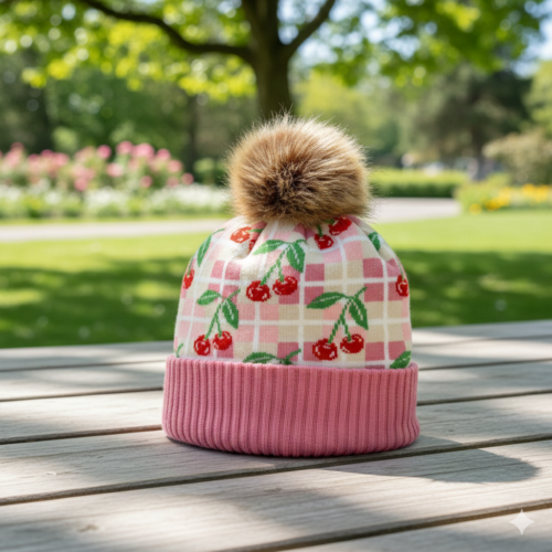 This Kids Cherry Pattern Pom Knit Beanie is designed to bring warmth and playful sweetness to everyday cold-weather wear. Inspired by classic fruit illustrations and soft textile patterns, the repeating cherry motifs are layered over a gentle checkered background, creating a look that feels cheerful, cozy, and easy to love. A soft pink and cream color palette sets a warm, friendly tone, while the bright red cherries and green leaves add lively contrast. The balanced pattern layout keeps the design fun without feeling busy, making it easy to pair with winter jackets, sweaters, and everyday outfits. Crafted from soft knit fabric, this beanie offers comfortable warmth with a lightweight feel. The fold-over ribbed cuff provides a secure fit for growing kids, while the fluffy pom pom adds a classic winter detail with a playful finish. Designed for daily wear, outdoor play, and thoughtful seasonal gifting, it’s a charming accessory kids will enjoy wearing again and again. ✿Key Features Soft knit construction for cozy warmth and everyday comfort Playful cherry pattern with a clean, balanced layout Fold-over cuff and pom pom detail for a classic winter look ✿Kids Size: Fits most kids, suitable for head circumference 52–54 cm. ✿Key Retail Sales Channels This beanie is a versatile wholesale item that works well for a variety of retailers, including: Gift shops in tourist destinations and cultural landmarks Fashion boutiques that focus on trendy and seasonal accessories Lifestyle concept stores that carry unique, design-forward pieces College campus shops and bookstores with a youthful, playful audience Holiday markets and seasonal pop-up shops looking for eye-catching winter essentials
