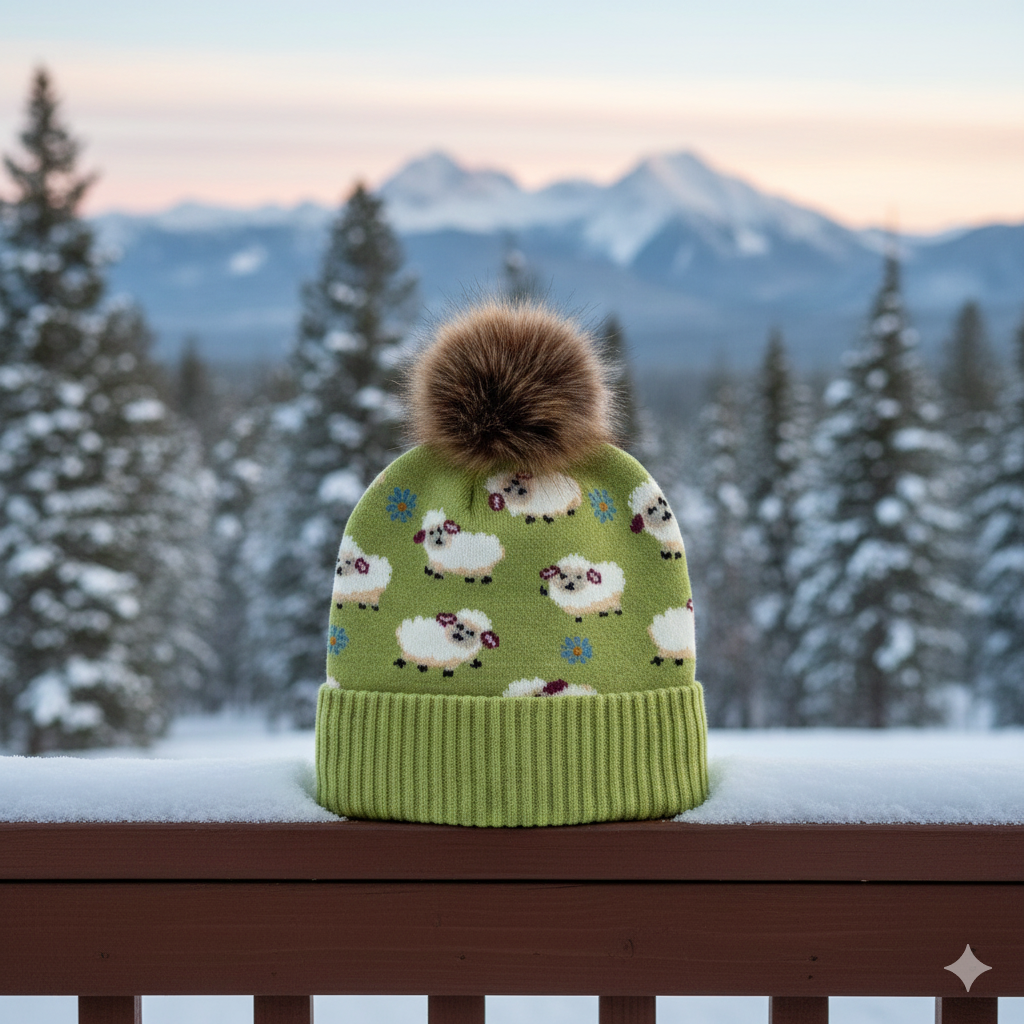 This Kids Sheep Pattern Pom Knit Beanie is designed to bring warmth and gentle charm to everyday cold-weather wear. Inspired by playful animal illustrations and classic knit styling, the repeating sheep motifs are arranged in a relaxed, evenly spaced layout that feels cheerful without being overly busy. A soft green base sets a calm, nature-inspired tone, while the small sheep and floral accents add a lighthearted touch that kids will enjoy. The balanced pattern placement keeps the design approachable and easy to pair with jackets, sweaters, and winter layers for daily wear. Crafted from soft knit fabric, this beanie offers cozy warmth with a lightweight and comfortable feel. The fold-over ribbed cuff provides a secure fit for growing kids, and the fluffy pom pom adds a fun, classic winter detail. Designed as a versatile seasonal accessory, it’s ideal for school days, outdoor play, family outings, and thoughtful gifting. ✿Key Features Soft knit construction for comfortable warmth and everyday wear Playful sheep pattern with a clean, balanced design Fold-over cuff and pom pom detail for a cozy winter finish ✿Kids Size: Fits most kids, suitable for head circumference 52–54 cm. ✿Key Retail Sales Channels This beanie is a versatile wholesale item that works well for a variety of retailers, including: Gift shops in tourist destinations and cultural landmarks Fashion boutiques that focus on trendy and seasonal accessories Lifestyle concept stores that carry unique, design-forward pieces College campus shops and bookstores with a youthful, playful audience Holiday markets and seasonal pop-up shops looking for eye-catching winter essentials