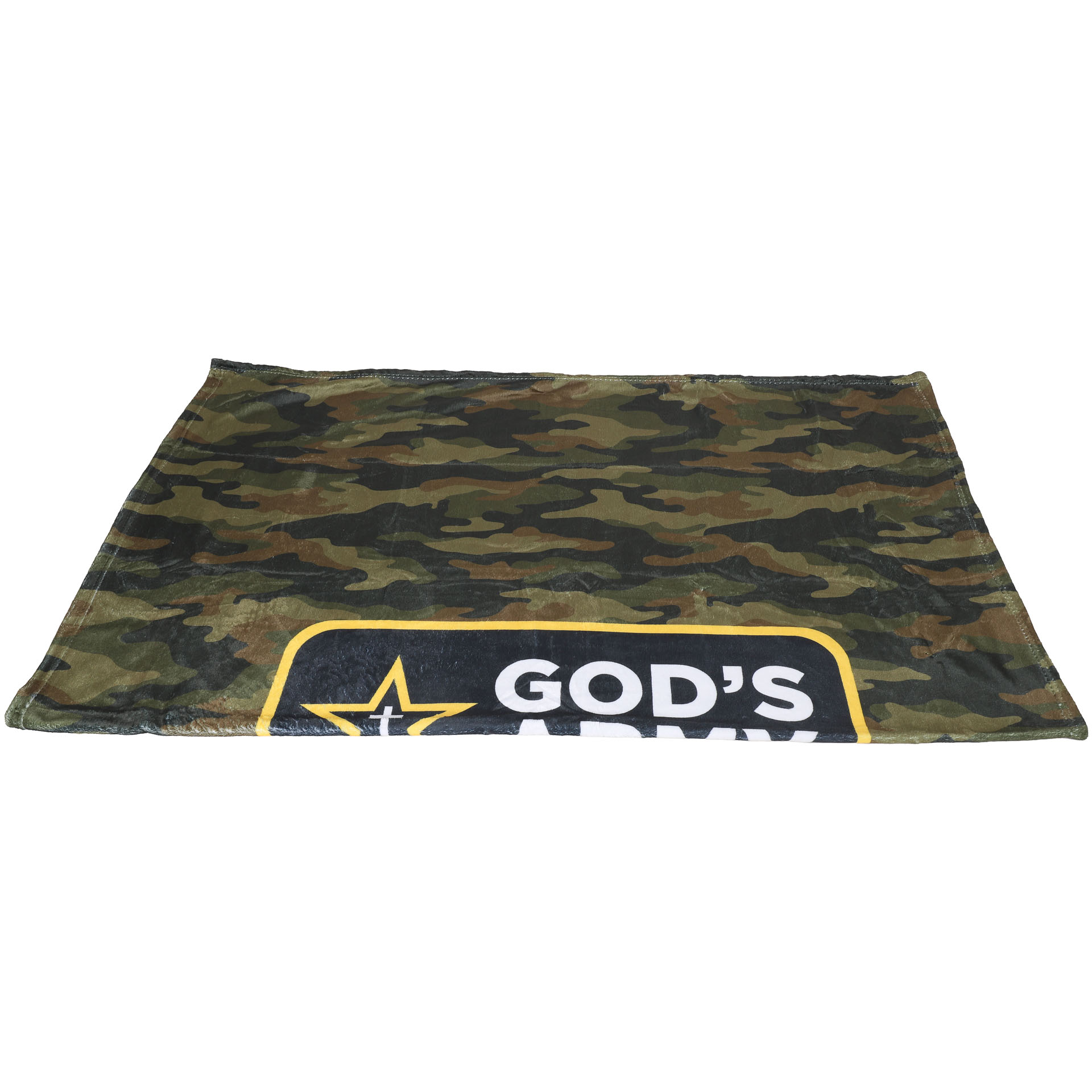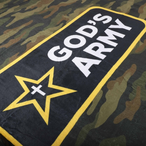 Empower and inspire your child with the Kidís Throw ñ Godís Army. This bold fleece throw features a classic camouflage pattern with a striking black and yellow design across the front that proudly declares ìGodís Army.î Perfect for reminding kids that they are strong in faith, this Christian throw blends comfort with meaning, making it more than just a blanket; itís a symbol of devotion and courage in Christ.