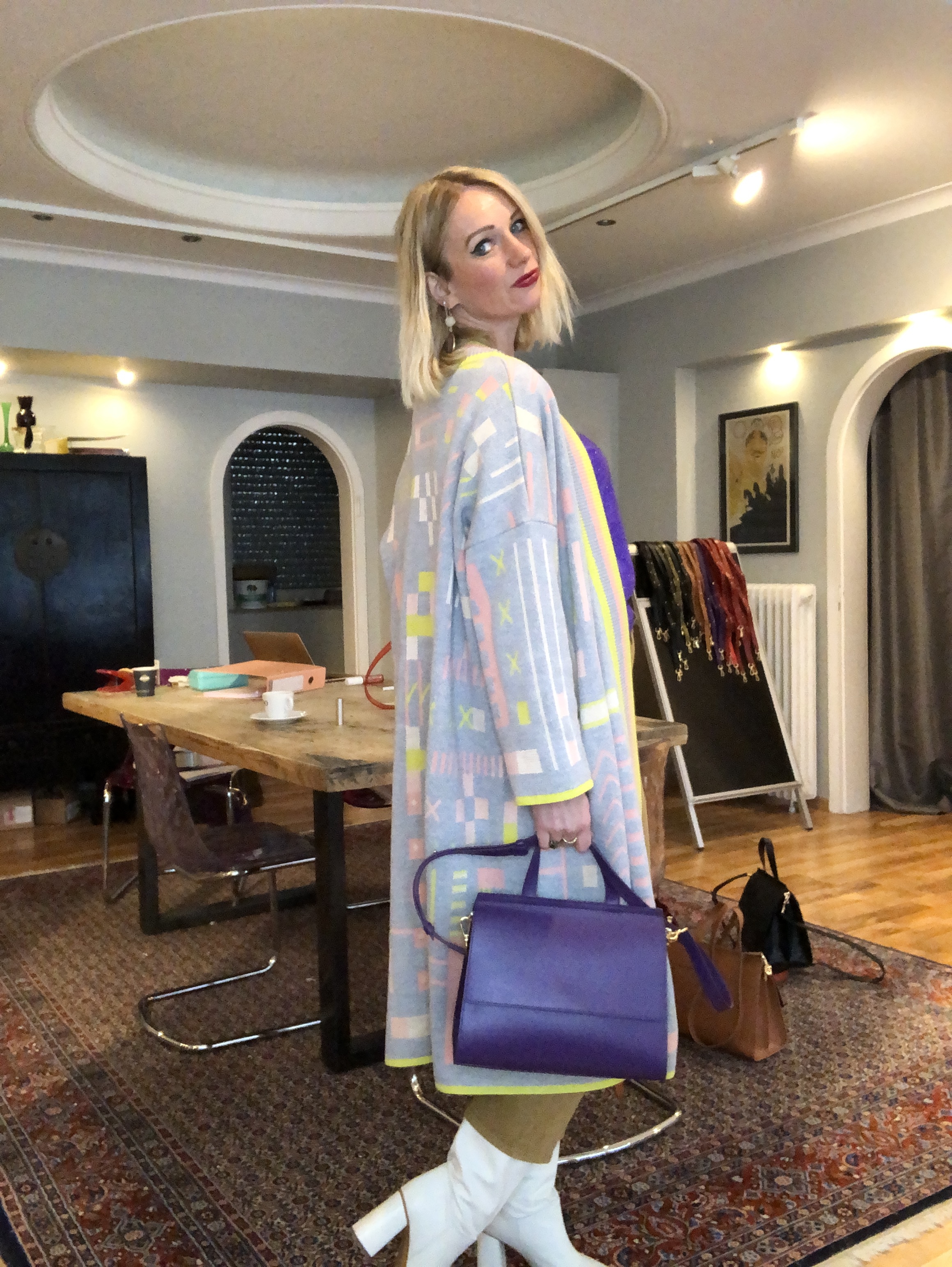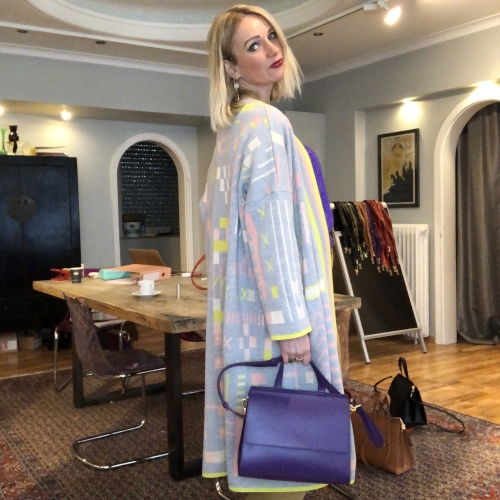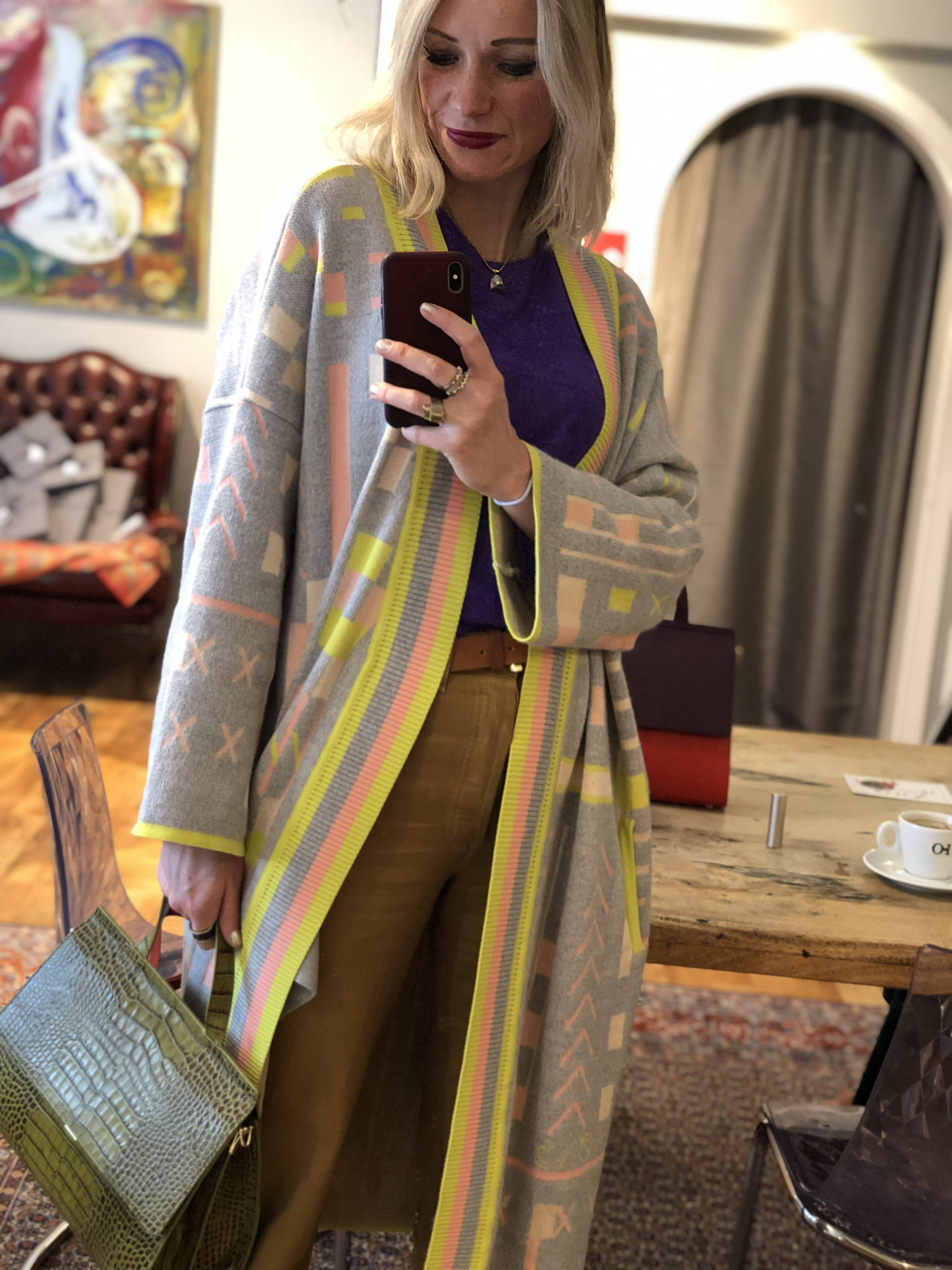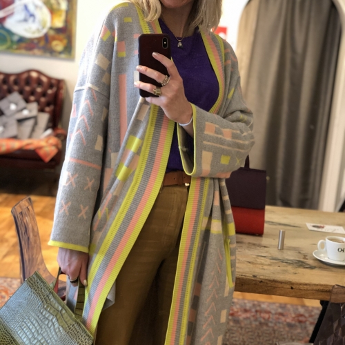 Limited one-size kimono with fancy design. The special thing about this kimono is that in the production process the design was created by the knitting machine. The color combination and the pattern are in the classic block stripe pattern in black and white combined with rose and can be combined perfectly with our accessories.