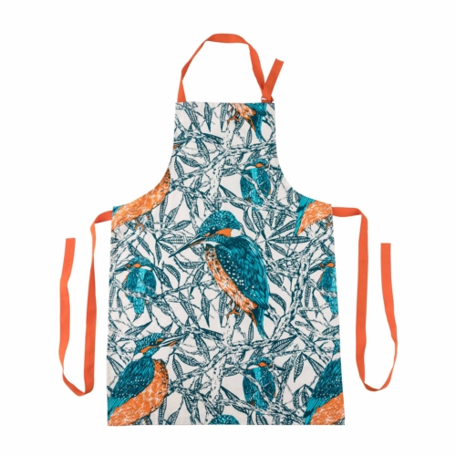 The apron is made in the UK from 100% unbleached cotton and has matching orange adjustable neck ties. It comes neatly folded and packaged in a branded Kraft sleeve with a window. Apron measures 85cm x 60cm and is machine washable (Max. 40ºC).