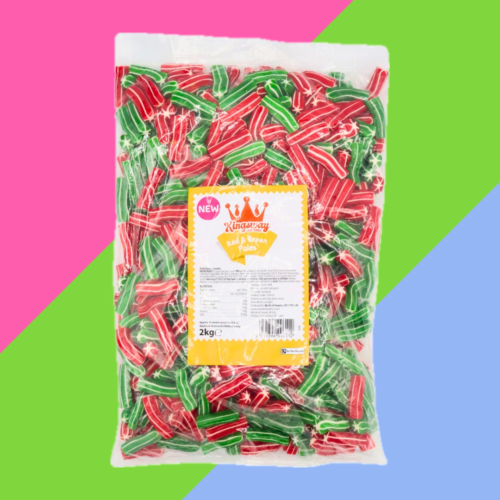 Fruit flavoured two-tone sweets Festive-themed; perfect for Christmas 2kg bulk bag Kingsway Green & Red Poles are sure to spark joy, no matter the time of year. Vibrant fruit-flavoured, sweets in red and green, packed into a 2kg bulk bag. Ideal for adding to your pick n mix selection, or bagging up into cones or clear bags to create gifts, whether festive-themed or a part of a colourful mix.
