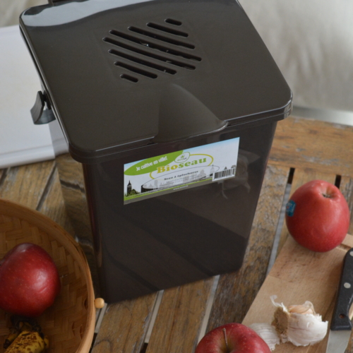 The Bioseau 7L is an plastic bucket especially designed to store your peelings and kitchen waste before putting them in your composter. It is equipped with a charcoal filter that simply need to be washed with soapy water every 6 months.