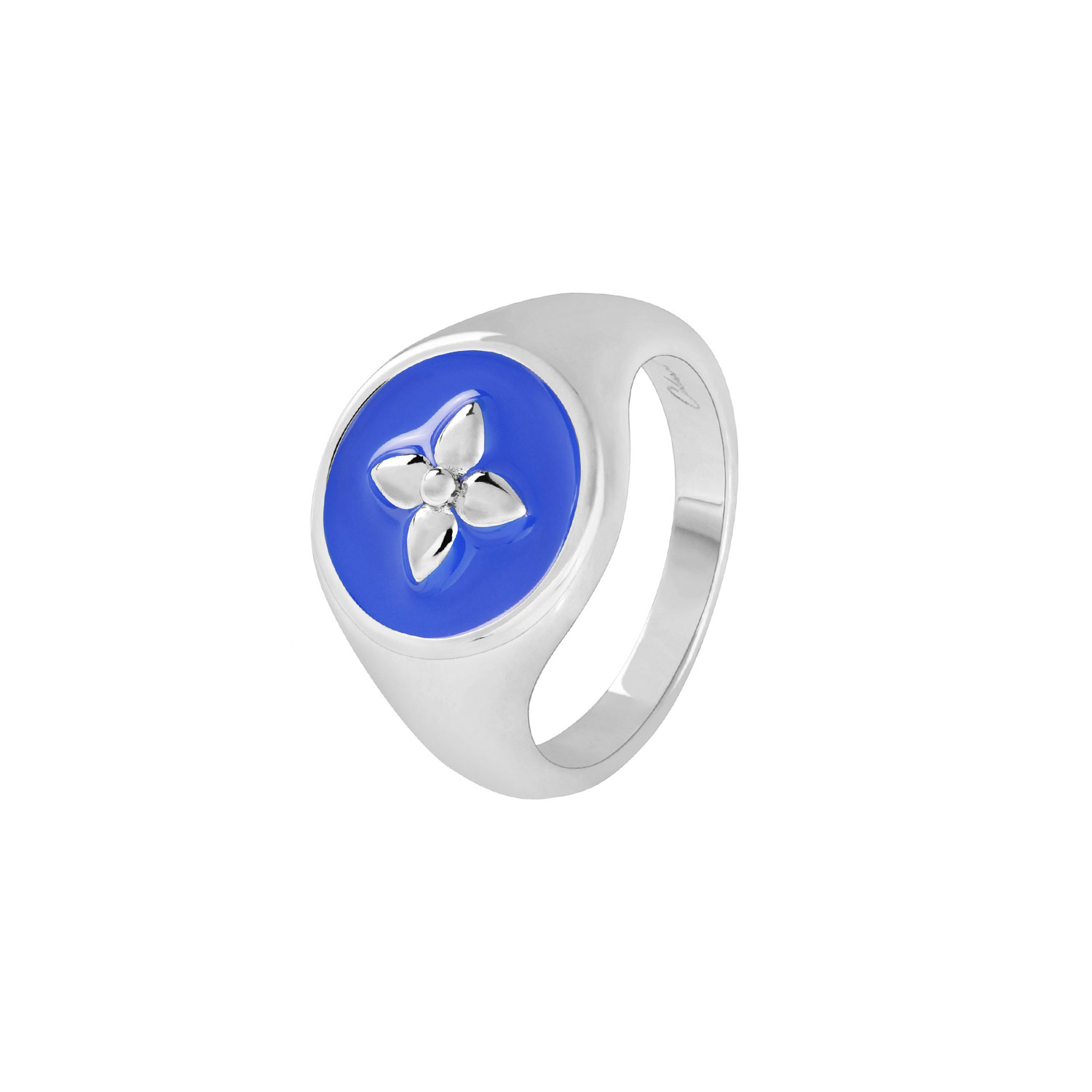 Croisette signet ring in rhodium silver lacquered in Klein blue.