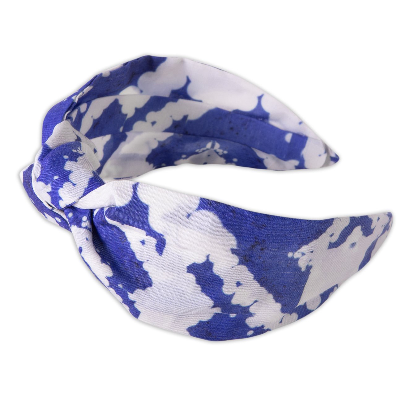 Light cotton knotted headband with whimsical, bold abstract design in Yves Klein blue and white. This lined headband has a wonderful fit, so no more headaches! You can adjust it to be a chunky 50’s style top knot, or tucked under for a more tidy, subtle look. Enjoy wearing this bold beauty – named after a stay in New York working with this blue: imagine looking up at a bright blue sky while sketching in a park.