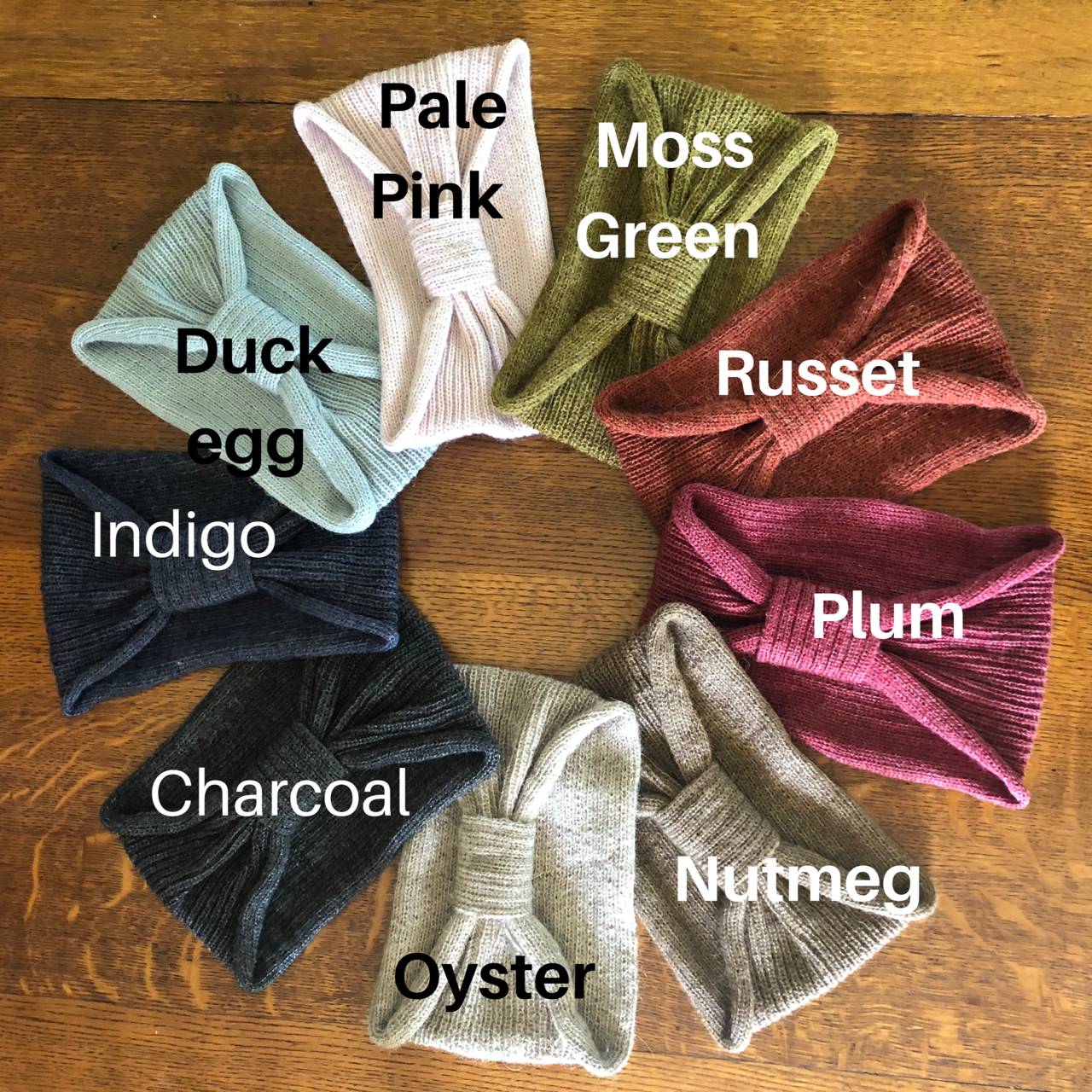 Wide chunky rib knit headband knitted in our artisan studio using 3 ply 100% alpaca wool. Supersoft, supercomfy and superwarm. Wear it back to front if you want more width over your head. Our luxury alpaca headbands are made with a nice stretchy rib knit which stays in place. Alpaca wool is hypoallergenic – it contains no lanolin which is a known allergen to many sensitive skins. It also has a long smooth staple which means little prickle factor compared to other wools.
