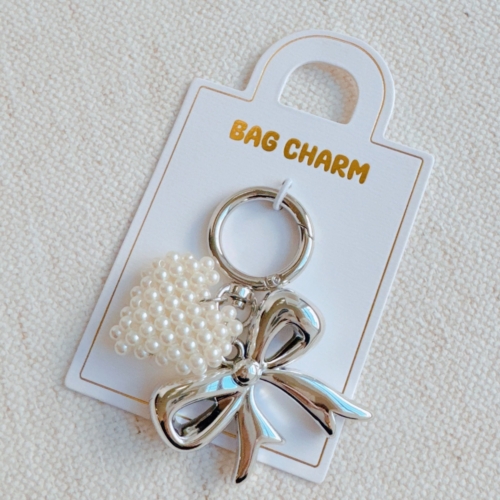 This lovely bag charm features a modern and mini pearl heart design. Perfect for adding a touch of elegance to any bag. Its stylish yet understated design is sure to impress. Dimensions: approximately 3″ long Lead and Nickel compliant Made in China