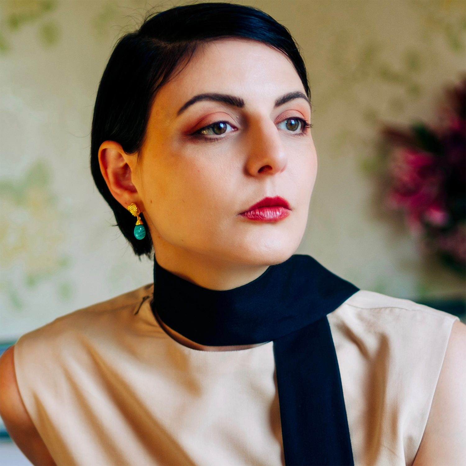 Artisan handcrafted Metal: 22 Karat Gold on recycled Brass Gemstone: Malachite Earring dimensions: Total length 30mm All jewellery arrives in our luxury soft pouch and box In ancient Greek mythology, the act of tying cloth or bands was seen as a powerful symbol of connection. This piece features a knot-inspired detail—a sculptural emblem of bond and protection, echoing timeless rituals and the quiet strength of myth.