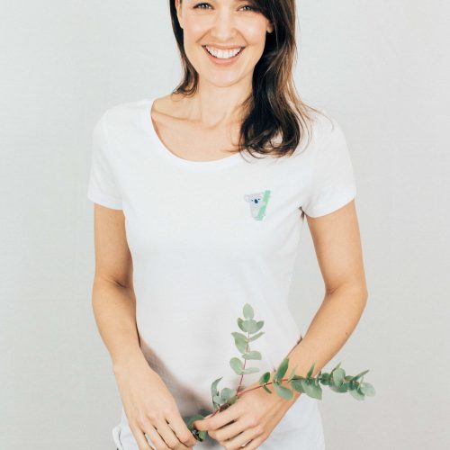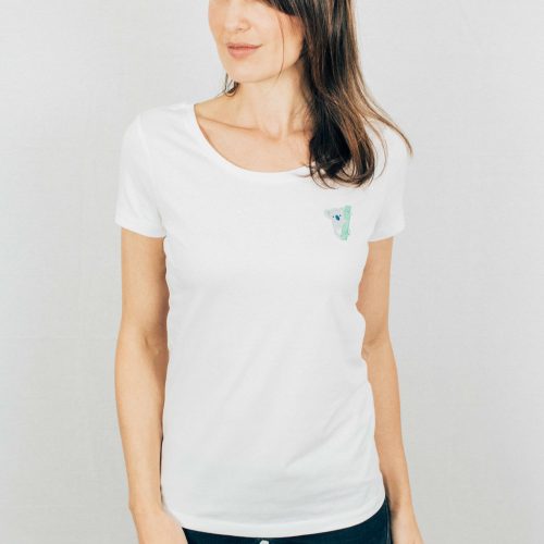 This tee is made of 100% cotton, 150 gsm. Pair it with your favourite skirt and sneakers or a pair of shorts. Features: Medium fit. Crew neck. Color : white. Short sleeves. Left chest embroidery. Made in Portugal. Model wears Medium size. Model hight: 173cm / 5’8″. Our recommendations: Wash inside out with similar colors. Hand washing at 30°. Iron inside out at low to medium temperature. No bleaching. Do not iron on decoration directly
