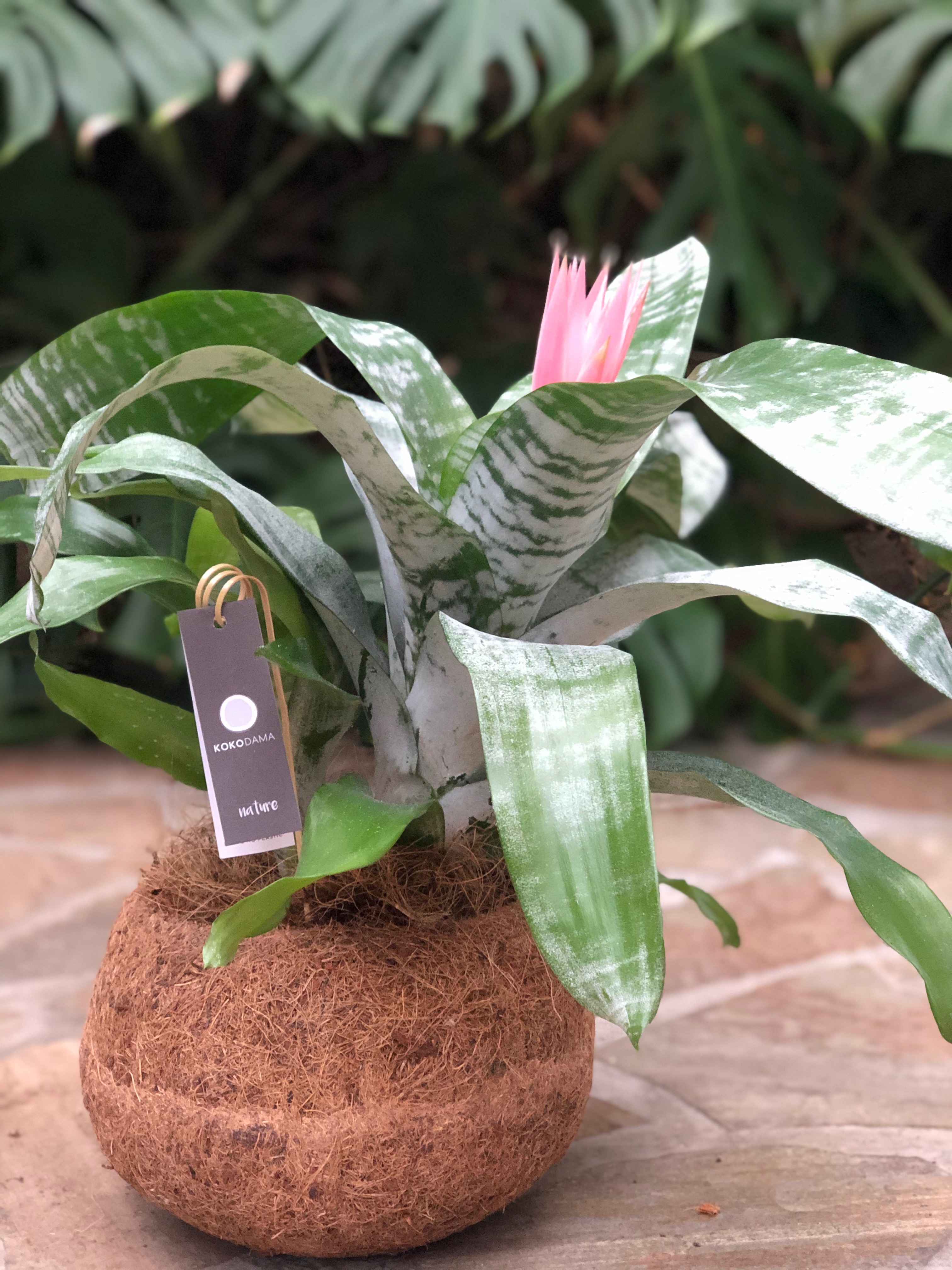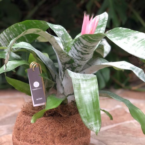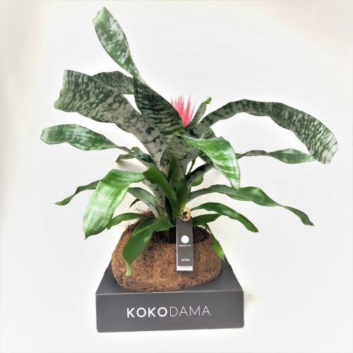 Kokodama XXL 25 cm with Achmea fasciata “Primera” (Silver vase or Urn plant)