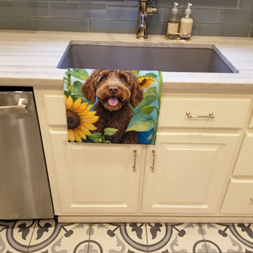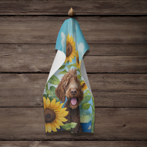 Kitchen Towel featuring breed specific Labradoodle artwork. Experience the perfect blend of aesthetic appeal and functional excellence with our Plush Velour Kitchen Towels. These are not your ordinary decorative kitchen towels that gather dust. Instead, they are designed to be as practical as they are stylish. The front layer of our towel is constructed from a minky plush polyester, known for its durability and color retention. Unlike conventional kitchen towels, the artwork on our towels is dyed directly into the fabric, ensuring vibrant colors that last. Polish your glassware to a brilliant sparkle using the plush front side of the towel. Flip to the back, crafted from 100% cotton terry loop, to exploit its exceptional absorbency for drying dishes or wiping down counters. Our kitchen towels redefine the concept of functional art, offering lasting quality that maintains the towel’s shape over time. Measuring 15 inches by 25 inches and weighing 2.3 lbs per dozen, these towels deliver an overwhelming sensory experience with their soft, plush, and smooth texture. The edges are meticulously finished with binding, enhancing their durability and visual appeal. For your convenience, these towels are machine washable and can be dried on low heat. After the first wash, the top fabric becomes even softer and fluffier, eliminating the need for ironing. Treat your kitchen to the luxury and functionality it deserves with our plush velour kitchen towels.