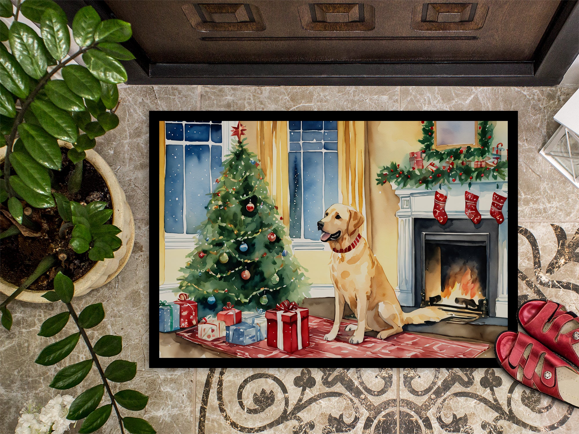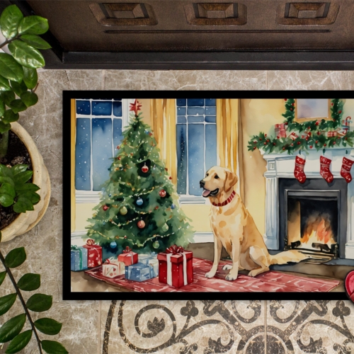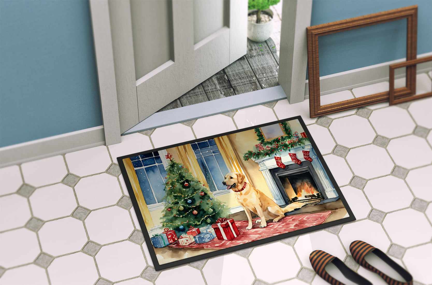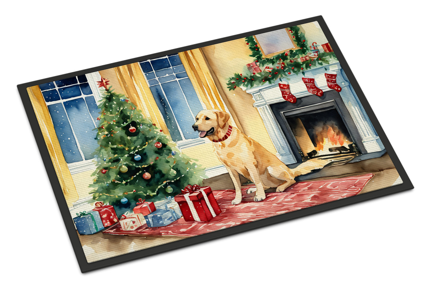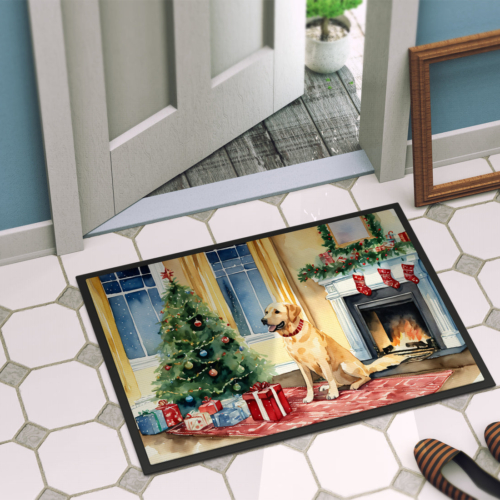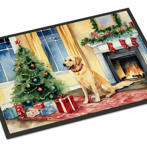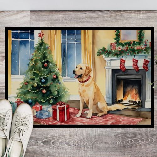 Doormat featuring breed specific Labrador Retriever artwork. Celebrate Christmas with this Christmas Doormat. Welcome your guests in style with our Artwork Door Mat, designed to withstand almost any weather condition. This mat, measuring approximately 24 by 36 inches, is held together by durable black binding tape. Its top layer, composed of polyester felt, is dyed with the eye-catching image you see on the mat. A few layers below provide the mat with stability, while its rubber bottom is stamped to help prevent slipping and ensures safety. Our mat works wonderfully as both an indoor or outdoor door mat. For cleaning, simply hose it off with water or use a power washer – no need for any cleaner that produces suds. Avoid scrubbing with a brush, instead, opt for the vacuum on floor setting. Designed manufactured and printed in the USA, this mat is a perfect addition to your porch, outdoor kitchen, entryway, or any indoor space. Its unique design makes it a charming decorative rug that greets your guests and adds a stylish touch to your home decor.
