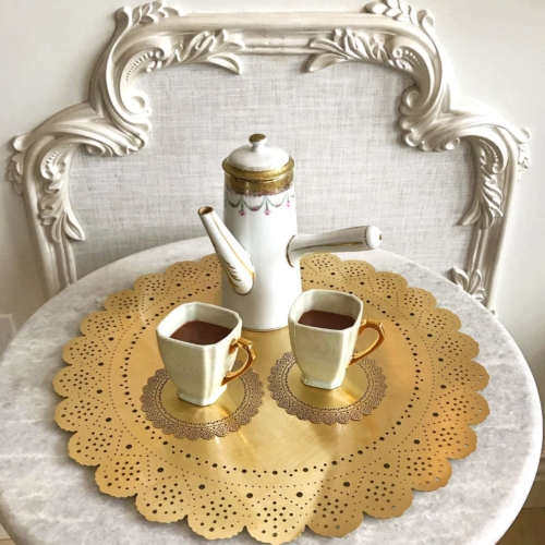 Transform your dining experience with the exquisite Lace Doily Metal Placemat Charger. This stunning piece beautifully merges vintage charm with contemporary aesthetics, making it a must-have for anyone who loves to entertain or simply elevate their home decor. Crafted with intricate lace-like details, this charger adds a sophisticated touch to any table setting, whether it’s for a casual brunch or an elegant dinner party. One of the standout features of this placemat charger is its versatility. You can use it as a traditional placemat, a stylish charger plate, or even as a decorative object. Its elegant design makes it perfect for showcasing your finest china or as a centerpiece for floral arrangements. You’ll be amazed at how this charger effortlessly enhances the overall ambiance of your dining space. In addition to its stunning appearance, the Lace Doily Metal Placemat Charger offers practical benefits. It is incredibly easy to maintain, requiring just a simple wipe with a damp cloth to keep it looking pristine and new. Say goodbye to the hassle of extensive cleaning routines and focus on what truly matters—enjoying your meals and creating memorable moments with loved ones. This charger also comes beautifully packaged in a charming sleeve that features a decorative tabletop illustration. It’s not just a decorative item; it makes for a thoughtful gift for housewarmings, weddings, or any special occasion. Give the gift of elegance and style to those you care about. Designed with care, the Lace Doily Metal Placemat Charger has impressive specifications that cater to both functionality and style: Dimensions: 15″ Diameter SKU: A423 Embrace the perfect blend of nostalgia and modern design. Your dining table deserves the touch of elegance that the Lace Doily Metal Placemat Charger brings. Order yours today and start impressing your guests!