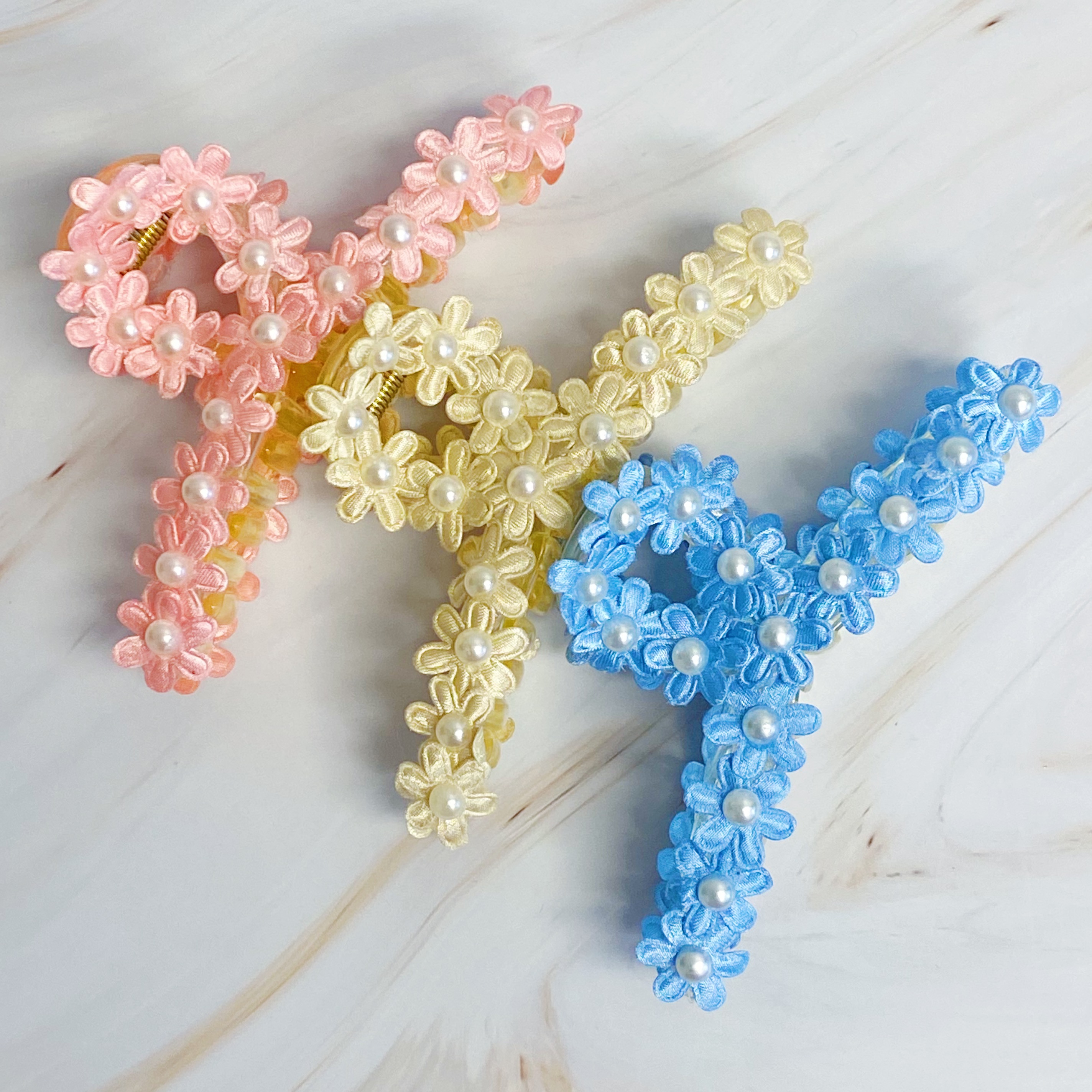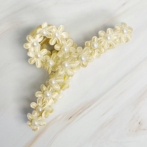 This Lace Flower All Around Hair Claw is perfect for special occasions as well as everyday wear. Its beautiful fabric flower with pearl embellishment is sure to turn heads, while its large capacity allows it to firmly hold your hair in place. A great addition to any wardrobe. Individually packaged in clear cello bag with Ellison + Young logo card attached. Lightweight Dimensions: Approximately 4.2″ X 1.7″ X 1.5″ Medium to large capacity to hold hair Made in China