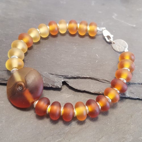 Total length of the bracelet is 21cm or 8″, with a the focal bead measuring 22mm across. Each bead is individually hand made so bracelets will vary slightly from the images.