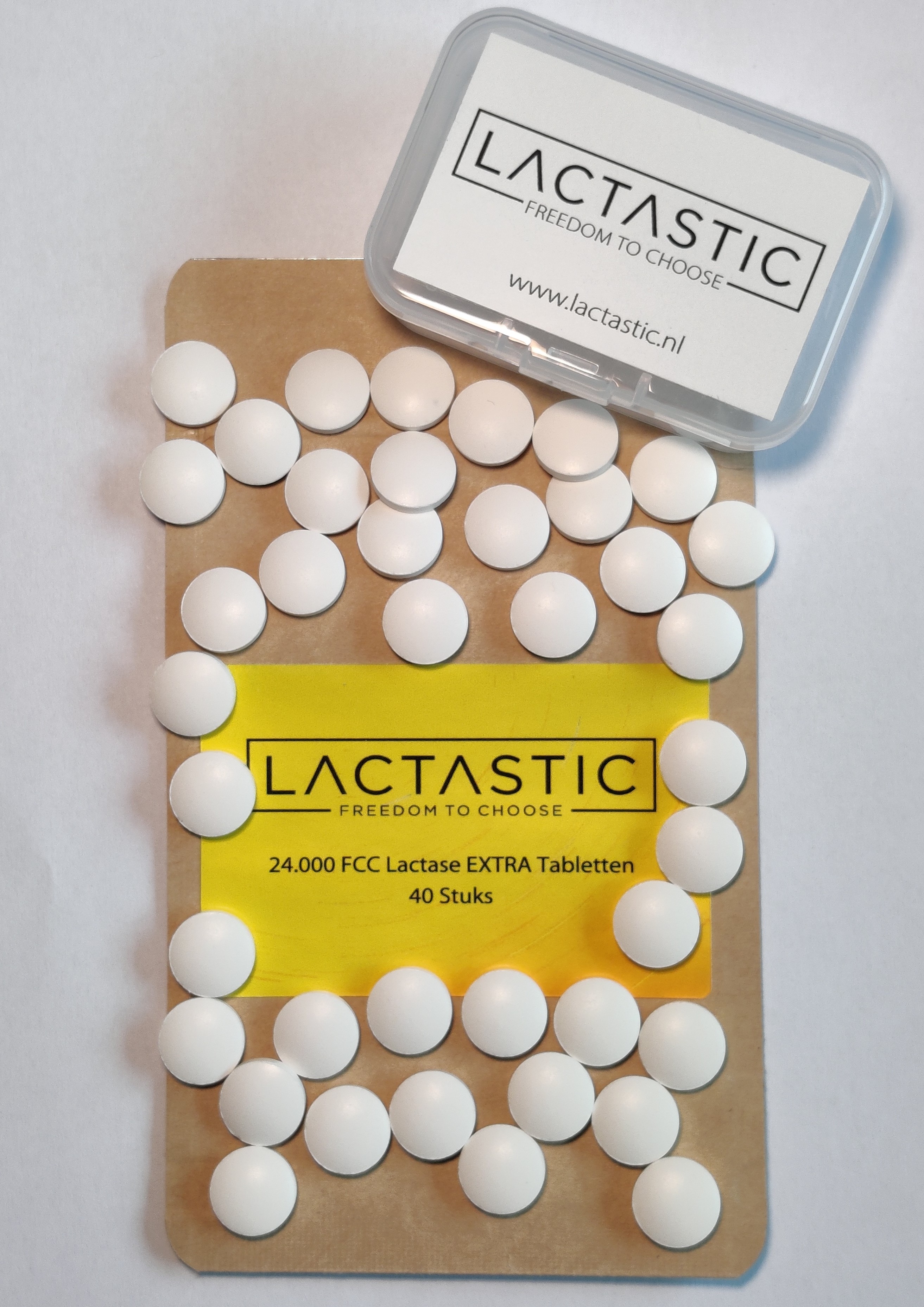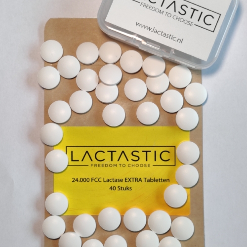 Je ontvangt 60x 12000 FCC tabletten voor de kleinere hoeveelheden lactose in bijvoorbeeld een stuk chocolade of een ijsje. Maar als je lekker uit eten gaat dan wil je helemaal niet nadenken over hoeveel lactose er in je maaltijd zit en daarvoor ontvang je 40x Lactastic EXTRA Lactase Tabletten met 24,000 FCC Lactase de sterkste tablet in nederland.
