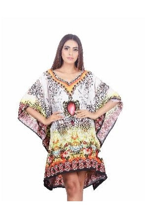 Ladies Sexy Beige /Brown Printed Caftan Cover up