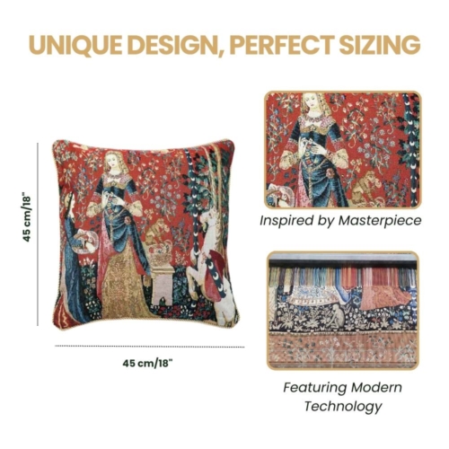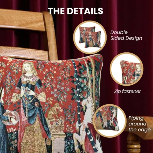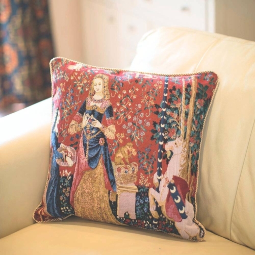 The unique cushion covers have a double-sided tapestry cushion with a piped edge