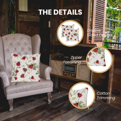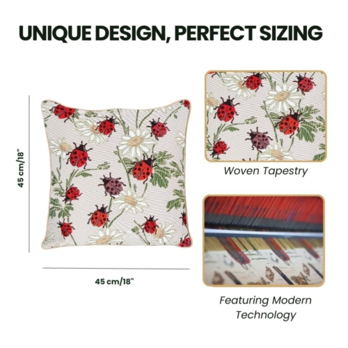 Ladybug Decorative Throw Pillow Cover, 18×18 Inch