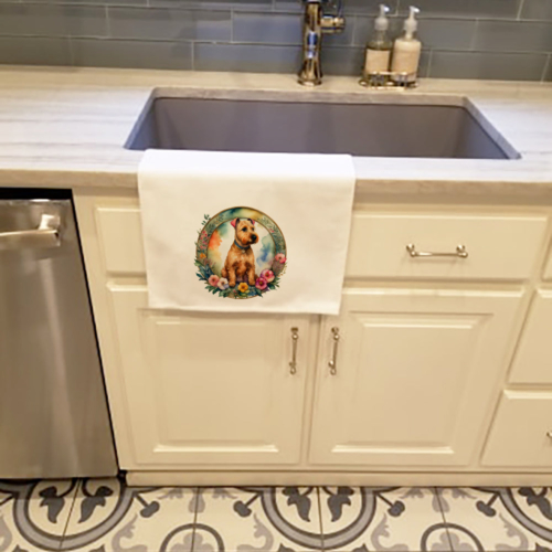 Kitchen Towel Set of 2 featuring breed specific Lakeland Terrier artwork. Spruce up your kitchen decor with Caroline’s Treasures Decorative White Kitchen Towel Set. This set of two dish towels showcases beautiful artwork from one of our talented artists, making them both practical and visually appealing. These towels are crafted from 100% cotton, offering excellent absorbency and durability, making them ideal for any kitchen task. Each white towel measures 19 inches by 28 inches, providing ample coverage for drying dishes or wiping up spills. The standout feature of these towels is the full-color artwork design printed on each one. They can serve as a vibrant accent in your kitchen, turning a functional item into a delightful piece of decor. When it comes to care, these towels are machine washable in cold water and can be dried on low heat. Remember to always use a pressing cloth when pressing the design, and avoid using bleach on the decorated towel. The Decorative White Kitchen Towel Set makes a great gift or a stylish addition to your own kitchen.