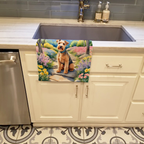 Kitchen Towel featuring breed specific Lakeland Terrier artwork. Experience the perfect blend of aesthetic appeal and functional excellence with our Plush Velour Kitchen Towels. These are not your ordinary decorative kitchen towels that gather dust. Instead, they are designed to be as practical as they are stylish. The front layer of our towel is constructed from a minky plush polyester, known for its durability and color retention. Unlike conventional kitchen towels, the artwork on our towels is dyed directly into the fabric, ensuring vibrant colors that last. Polish your glassware to a brilliant sparkle using the plush front side of the towel. Flip to the back, crafted from 100% cotton terry loop, to exploit its exceptional absorbency for drying dishes or wiping down counters. Our kitchen towels redefine the concept of functional art, offering lasting quality that maintains the towel’s shape over time. Measuring 15 inches by 25 inches and weighing 2.3 lbs per dozen, these towels deliver an overwhelming sensory experience with their soft, plush, and smooth texture. The edges are meticulously finished with binding, enhancing their durability and visual appeal. For your convenience, these towels are machine washable and can be dried on low heat. After the first wash, the top fabric becomes even softer and fluffier, eliminating the need for ironing. Treat your kitchen to the luxury and functionality it deserves with our plush velour kitchen towels.