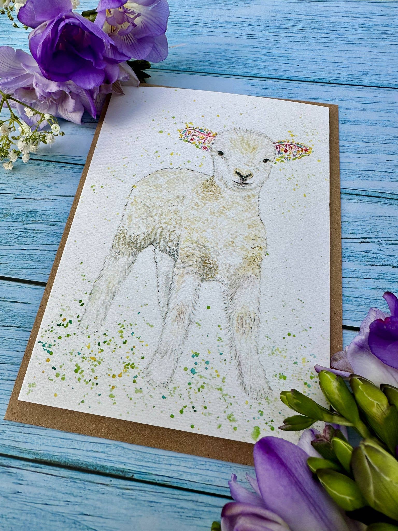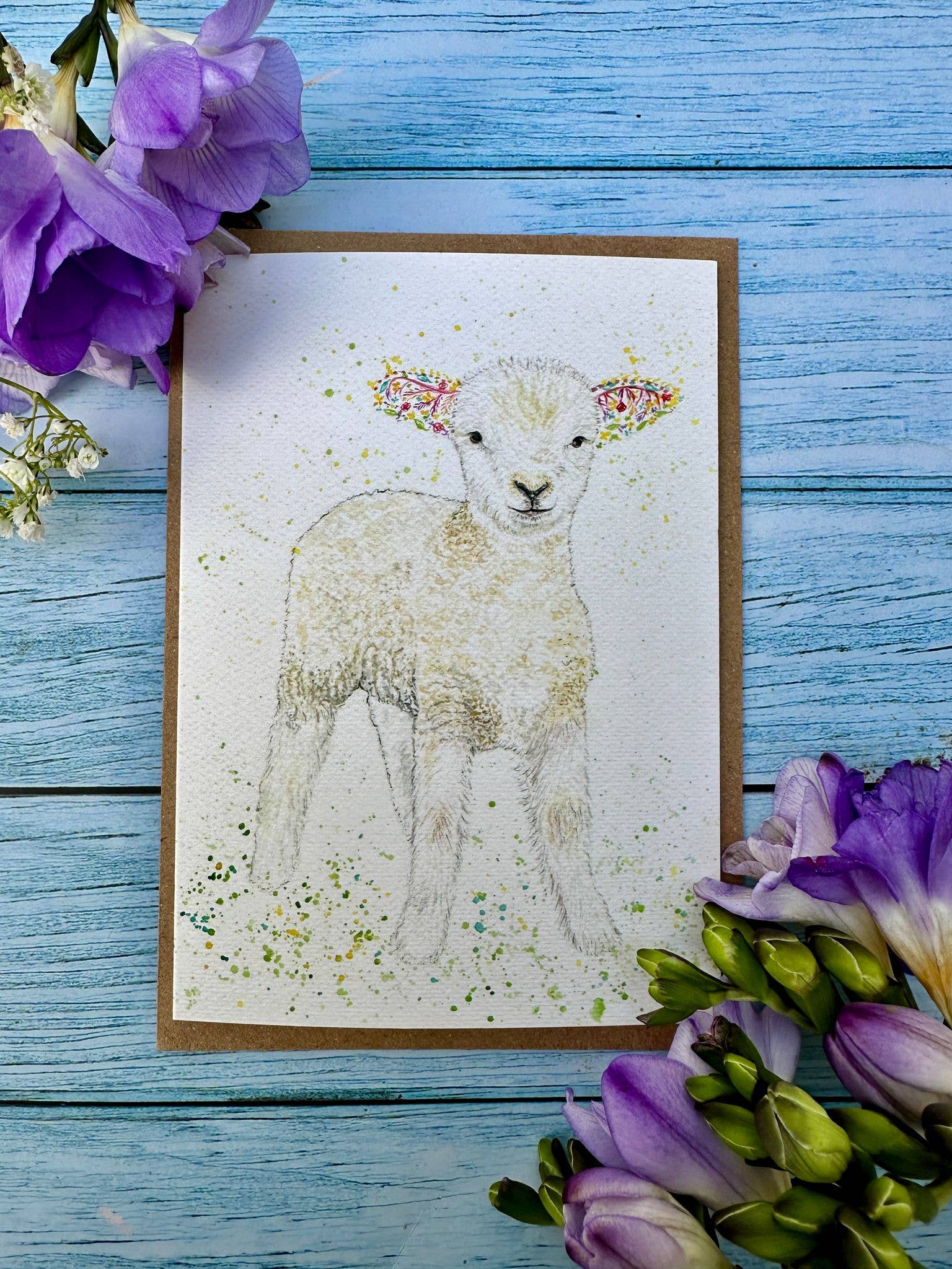 Lamb Spring Eco Friendly Card | Blank Colourful Watercolour
