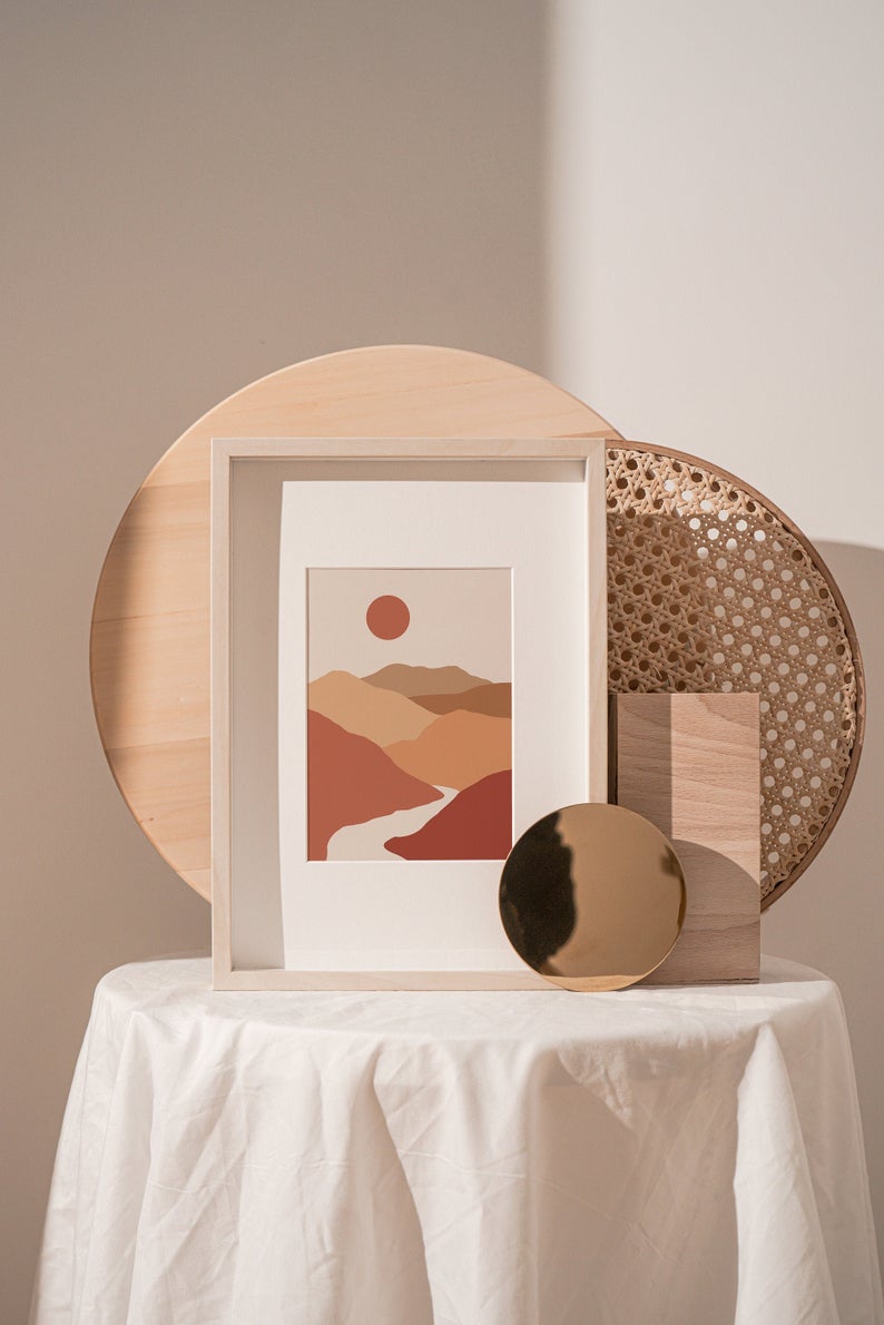 Landscape Art Print, Abstract Desert, Sand Dunes Landscape, Mountains, Warm Colours, Modern Wall Art, Minimal Shapes, Boho Illustration