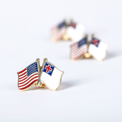 Featuring an American and Christian flag in bright gold and saturated colors , this is a design that’s sure to catch the eye.