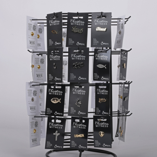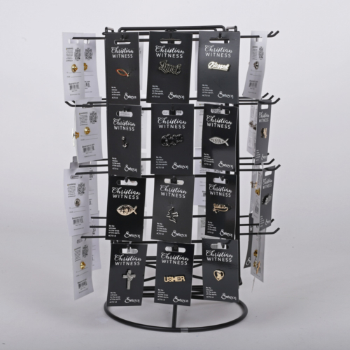 Bring timeless inspiration and meaningful style to your retail space with the Lapel Pins Assortment 283. This ready-to-sell collection includes a FREE 4-sided rotating countertop display with 48 slots, perfectly designed to showcase a wide range of faith-based lapel pins. Each assortment comes pre-packed with 6 pieces of 48 unique designs, offering customers a meaningful variety to choose from while providing you with a complete, turn-key retail solution. Whether your shoppers are looking for subtle expressions of faith, patriotic emblems, or encouraging symbols, this assortment ensures something for everyone.