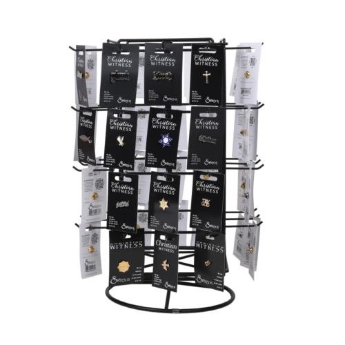 Bring timeless inspiration and meaningful style to your retail space with the Lapel Pins Assortment 283. This ready-to-sell collection includes a FREE 4-sided rotating countertop display with 48 slots, perfectly designed to showcase a wide range of faith-based lapel pins. Each assortment comes pre-packed with 6 pieces of 48 unique designs, offering customers a meaningful variety to choose from while providing you with a complete, turn-key retail solution. Whether your shoppers are looking for subtle expressions of faith, patriotic emblems, or encouraging symbols, this assortment ensures something for everyone.