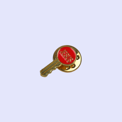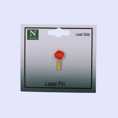 This set of 3 gold key lapel pins serves as a powerful symbol of faith and the message of salvation. Made from lead-safe metal, each pin features a beautifully crafted gold key with a bold red top with that reads Jesus. The key represents Christ as the way to eternal life, and the red top highlights the significance of His sacrifice on the cross.