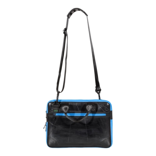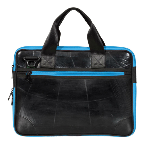 The slim Panther laptop bag from Ecowings is completely handmade. The material of the laptop bag is recycled rubber. The laptop bag has multifunctional compartments with zipper on the front and back. The main compartment has a padded compartment for the laptop and three smaller compartments for additional accessories. At the bottom of the laptop bag is a zipper to enlarge the bag. Suitable for any professional with a laptop.