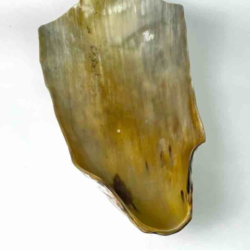 From Ankole cattle, a breed of cattle common in East Africa, have extraordinarily large horns which are naturally shed periodically and are recycled in many forms, including this beautiful large, freeform shaped bowls. The horn colors vary; this one is among the lighter shades, somewhat close to caramel in color. I took the photos of the man in whose studio these beautiful objects of African art are fashioned as well as the photo of the cow standing by the roadside. The other is an internet photo. 19 x 11 x 5″