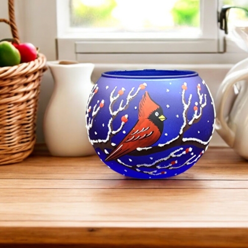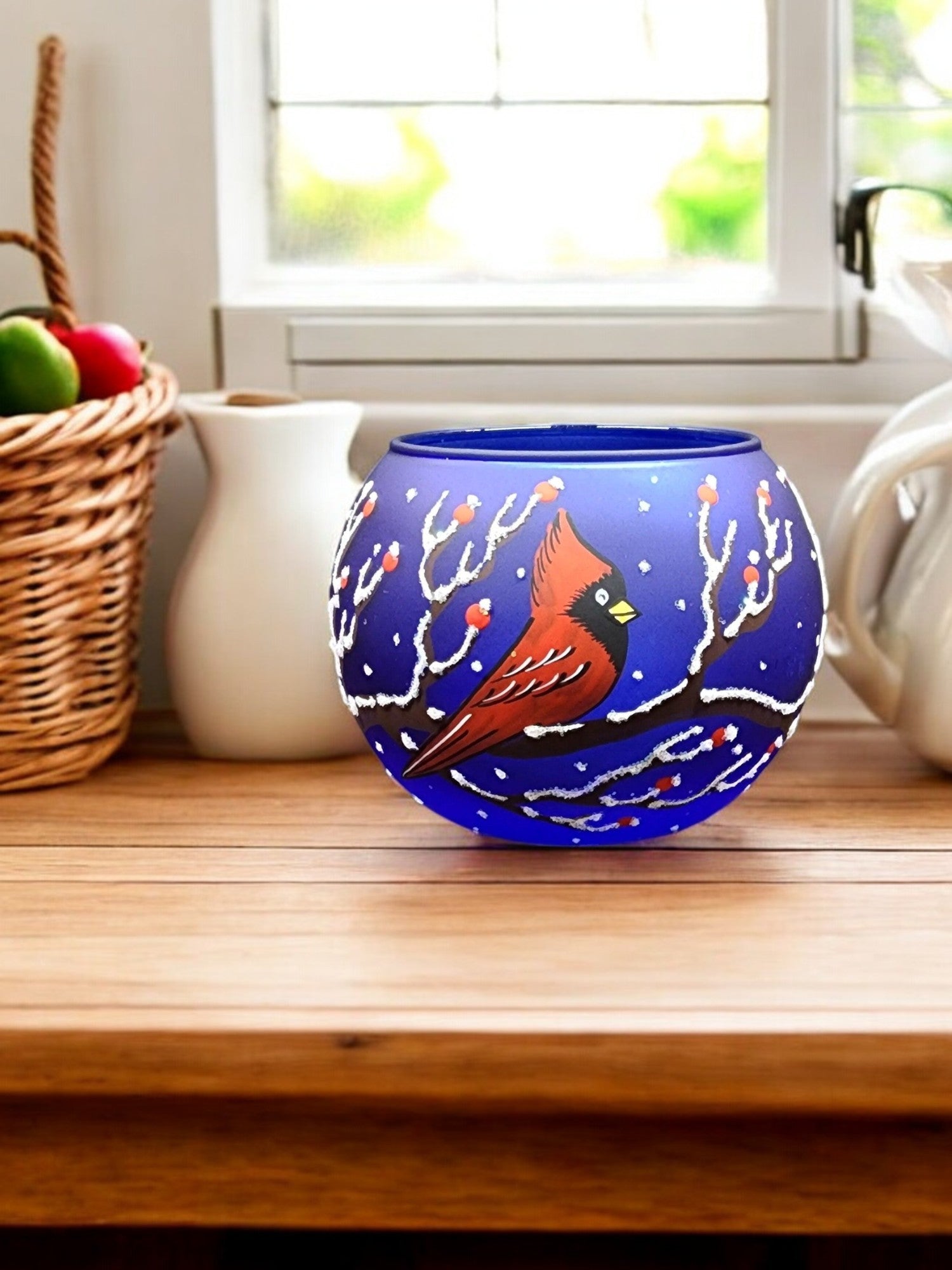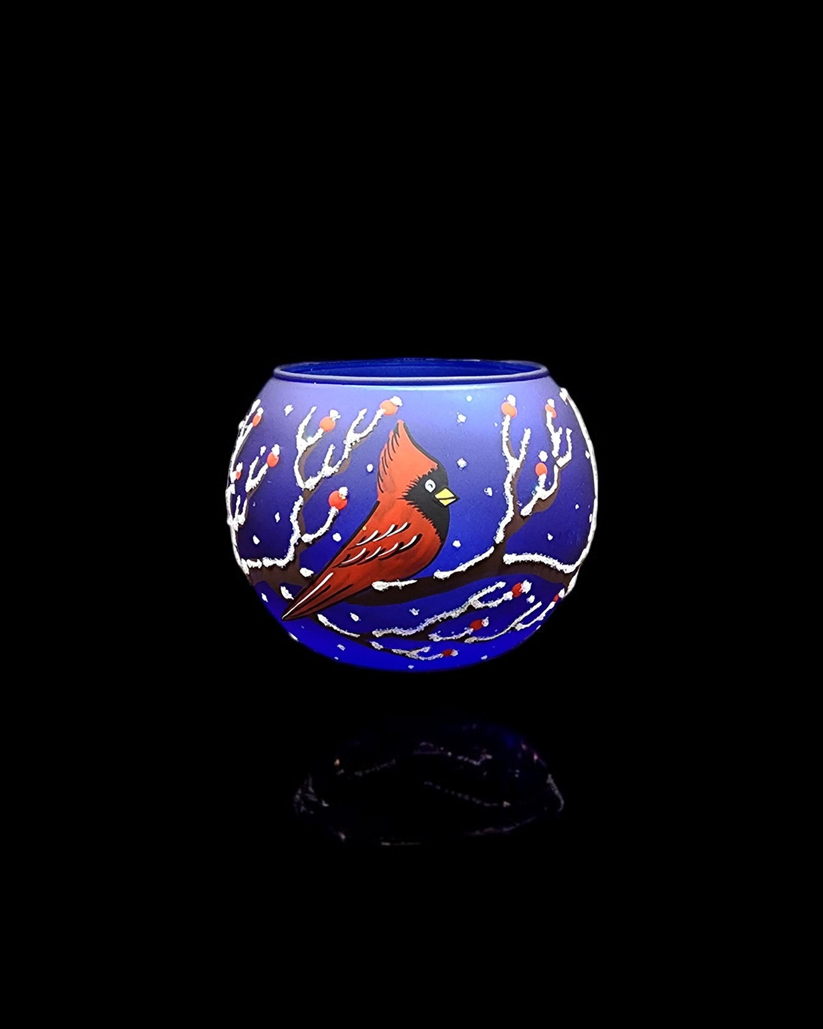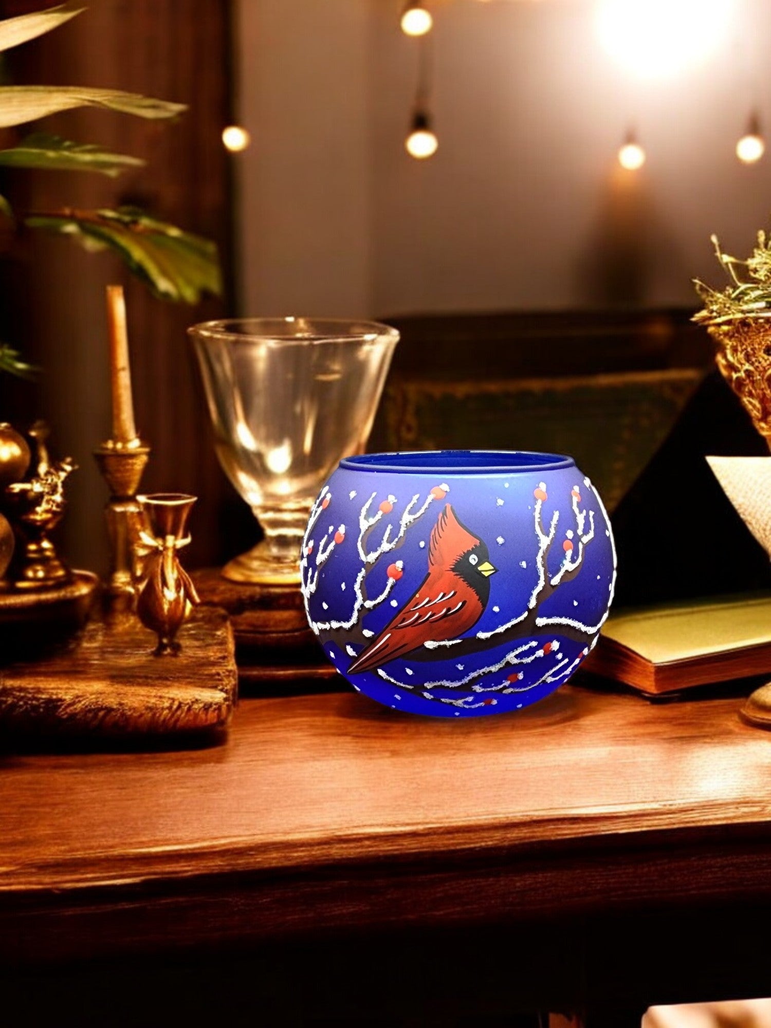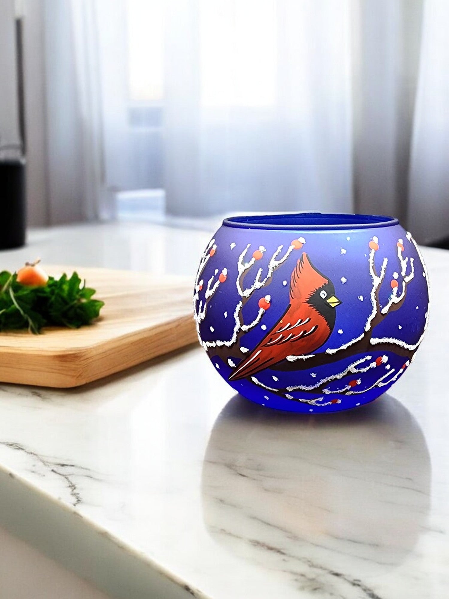 Large Blue Glass Candle Holder, Hand Crafted in Ukraine, Cardinal, Wonderful Year Round
