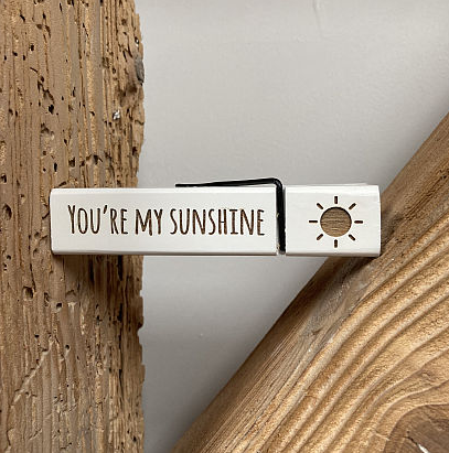 Original large white clothespin with engraving text. Give this large white clothespin engraved You’re my Sunshine to the birthday boy or girl or order it for your girlfriend, colleague, family member or for yourself.