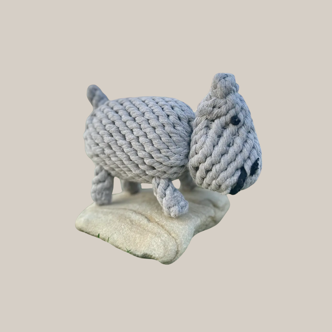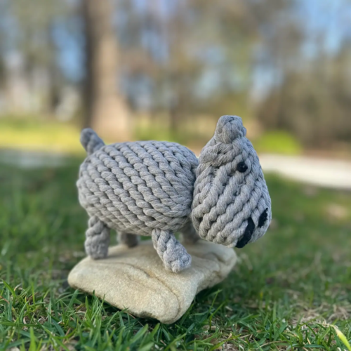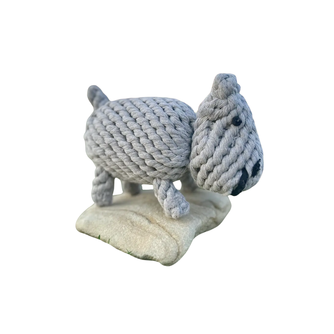 Handcrafted Gray Hippo Dog ToysWeight: 8.6 ozSize: 6 inches long, 3 inches high Welcome to the GreenPawed Friends Party! We are thrilled to announce the launch of our handmade hippo rope toys today. These cuties are part of our GreenPawed Friends Production Line. Our mission is to decrease textile waste worldwide and offer the finest sustainable cotton goods to our community. GreenPawed Friends aims to enhance pets’ playtime. These handmade animal rope toys, woven from sustainable cotton rope, exude eco-friendly joy. Supervise the Fun! Rope toys are pup-ular, but playtime needs supervision. Educate your customers to keep their furry friends safe and happy! Mission: lnspire healthy play and encourage eco-conscious pet owners to embrace sustainable choices.