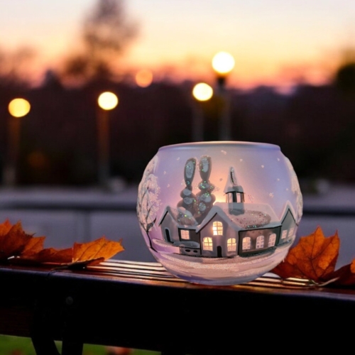 • Handcrafted In L’Viv Oblast, Ukraine• Mouth Blown Glass• Hand Painted – Stencil Free• Etched Out Windows Allow You To See Right Inside When The Candle Is Lit – Truly Beautiful• Wraparound Design Means There’s Always Something To See• Individually Boxed (A Unique Piece Of Glass Art In Every Box)• Large is Approximately 4″ Tall and 4.5″ Wide• Ships From Greensburg, PA• 1 Day Order Processing• A Gift That Will Be CherishedBrighten your space with the enchanting glow of our hand-painted blown glass candle holders. Featuring a delicate White Cabins design, each piece is a testament to exquisite Ukrainian craftsmanship. Perfectly sized for tea lights, this unique holder adds a touch of elegance and artistry to any room. Whether you’re seeking a centerpiece for a cozy evening or a thoughtful gift, this candle holder brings warmth and beauty to your home. Each piece is hand painted with skill, precision and love. We take great pride in our attention to details. Makes a wonderful gift, especially for those looking for something unique! While some prefer to use battery operated candles the best results are achieved using a real candle**. These candle holders are designed for tea lights, but can accommodate larger sizes as well. Large about 4″ tall and 4.5″ wideMedium about 3″ tall and 4″ wideSmall about 2″ tall and 2.5″ wide **Please note the candle holders are hand painted on the outside, so please do not allow them to get wet as water can damage the finish. To remove any wax we suggest a plastic butter-knife or a finger nail to scrape and a napkin or towel to wipe the inside. Please be gentle. Perfect for Christmas, Easter, New Years, Birthdays, Anniversaries, Graduations, Valentine’s Day, Mothers Day, or celebrate a House Warming. Embrace the artistry of glass candle holders, a timeless handcrafted gift. Please allow for slight variances as each piece is unique, just like you! Note: The listed price is for a single candle holder. Made in Ukraine