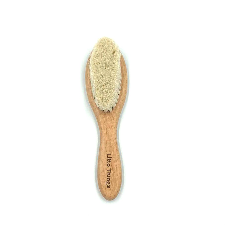 Natural Baby Brush with Soft Goats Hair Bristles is perfect for gently grooming and caring for your baby’s hair or for a soothing skin massage in the most natural way possible.