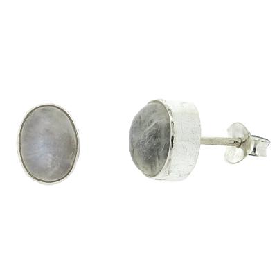 Large Oval stud earrings, set with Moonstone cabochon stones. Complete with a post and butterfly back.