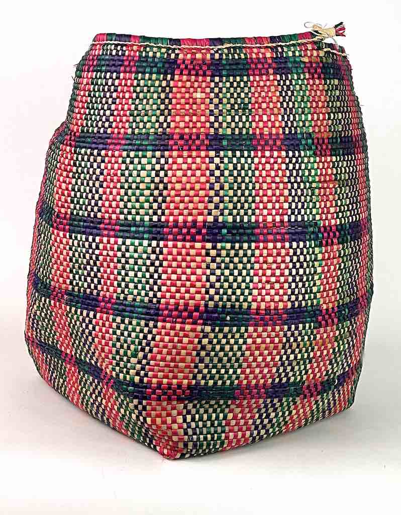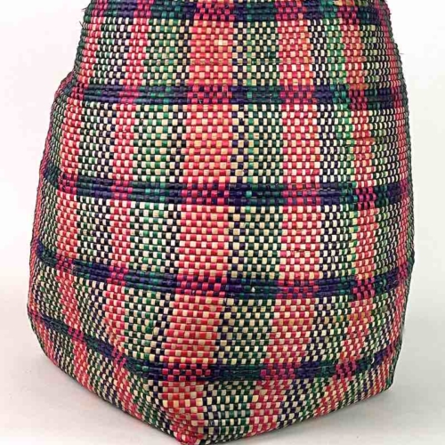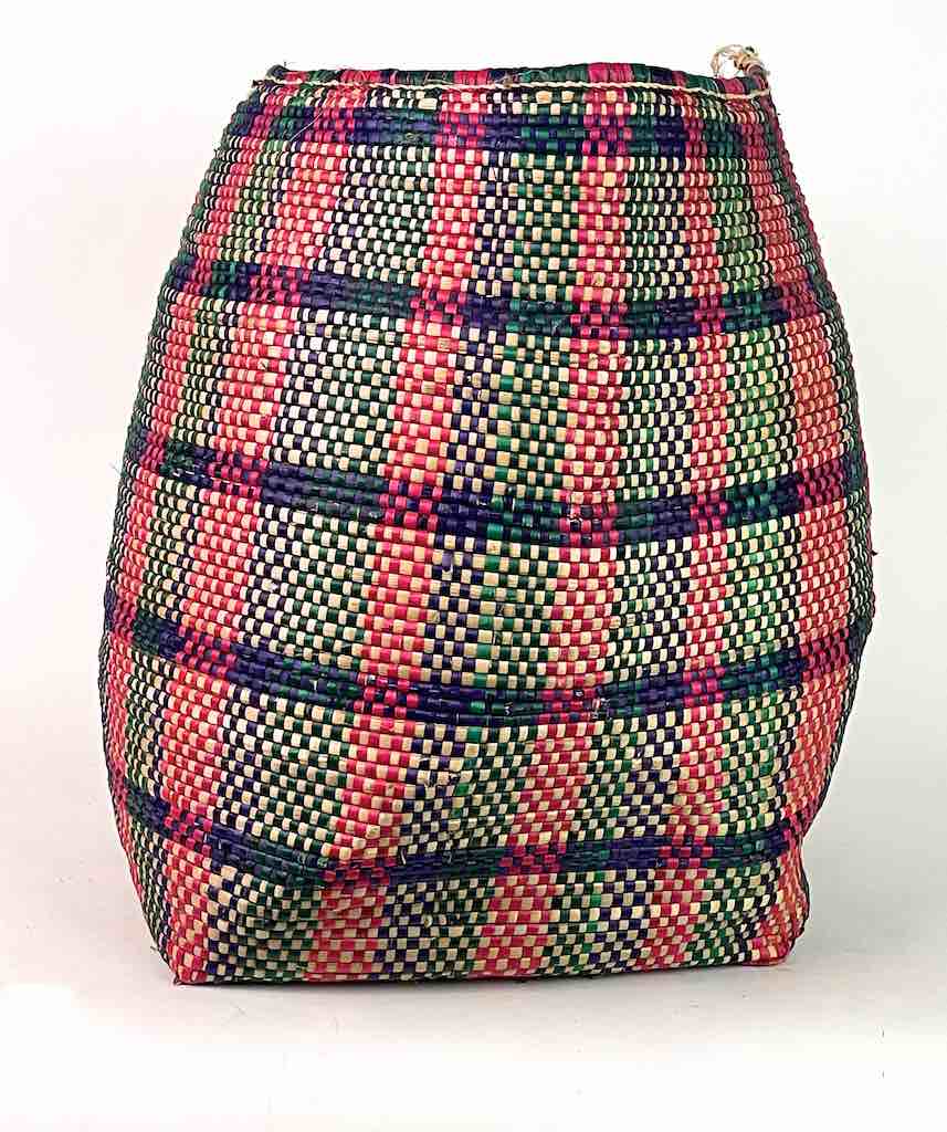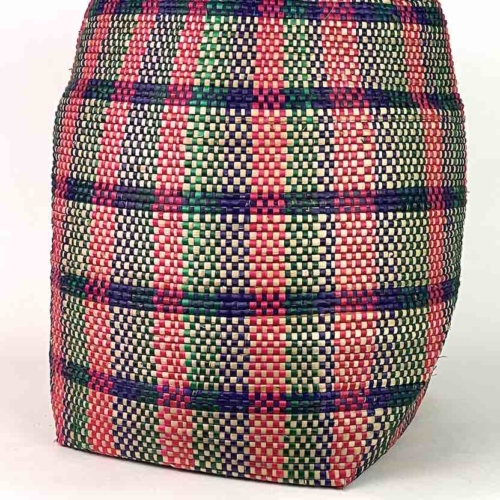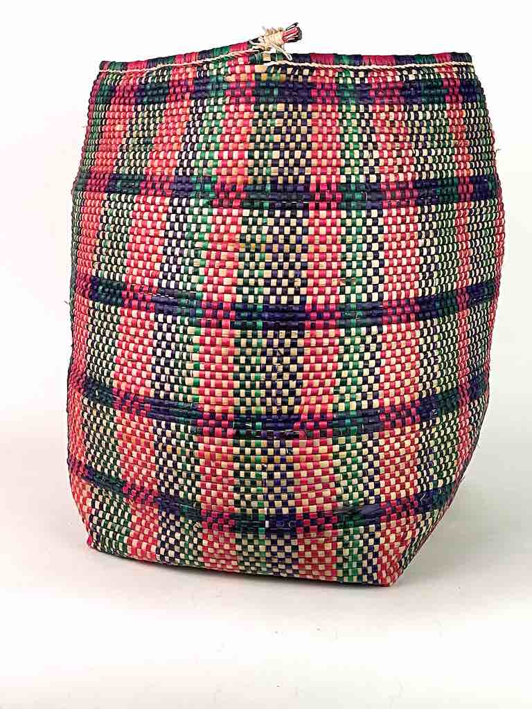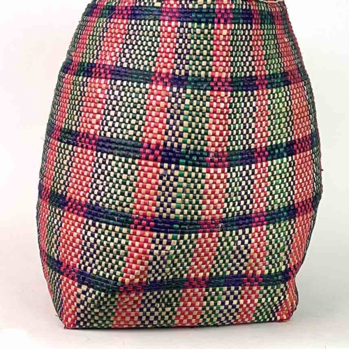 Large “Plaid” Multi-Stripe Woven Flexible Deep Swampgrass Basket – Togo